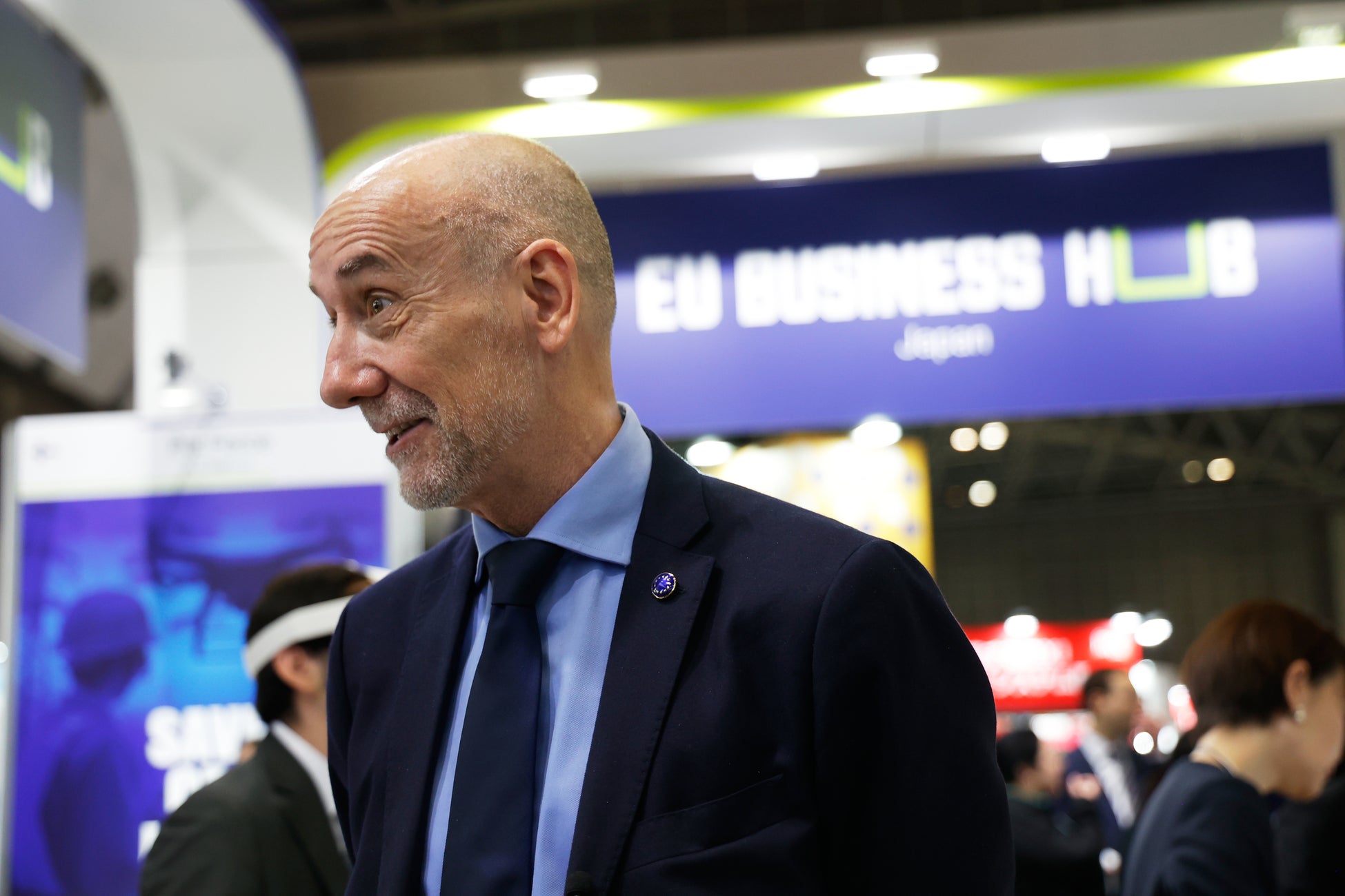 本ビジネスミッション中、ジャン=エリック・パケ駐日EU大使がEUパビリオンを訪問し、製品やサービスを展示している企業代表者らと会談を行いました