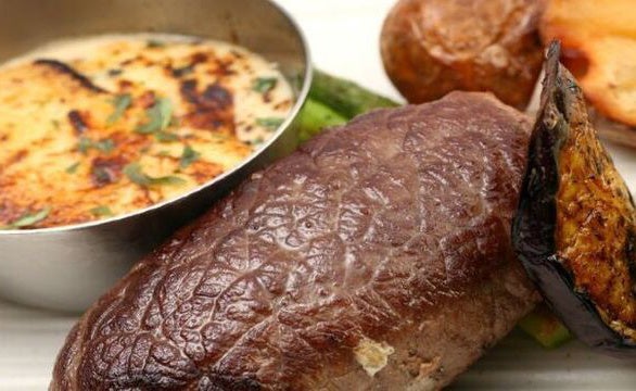 ソースはアルトラーチェ商品「肉のたれ」におろし玉ねぎを加えたオリジナルのシャリアピンソース。アルトラーチェ自慢のインカのめざめのポテトフライを添えた、贅沢なメニューとなっております。