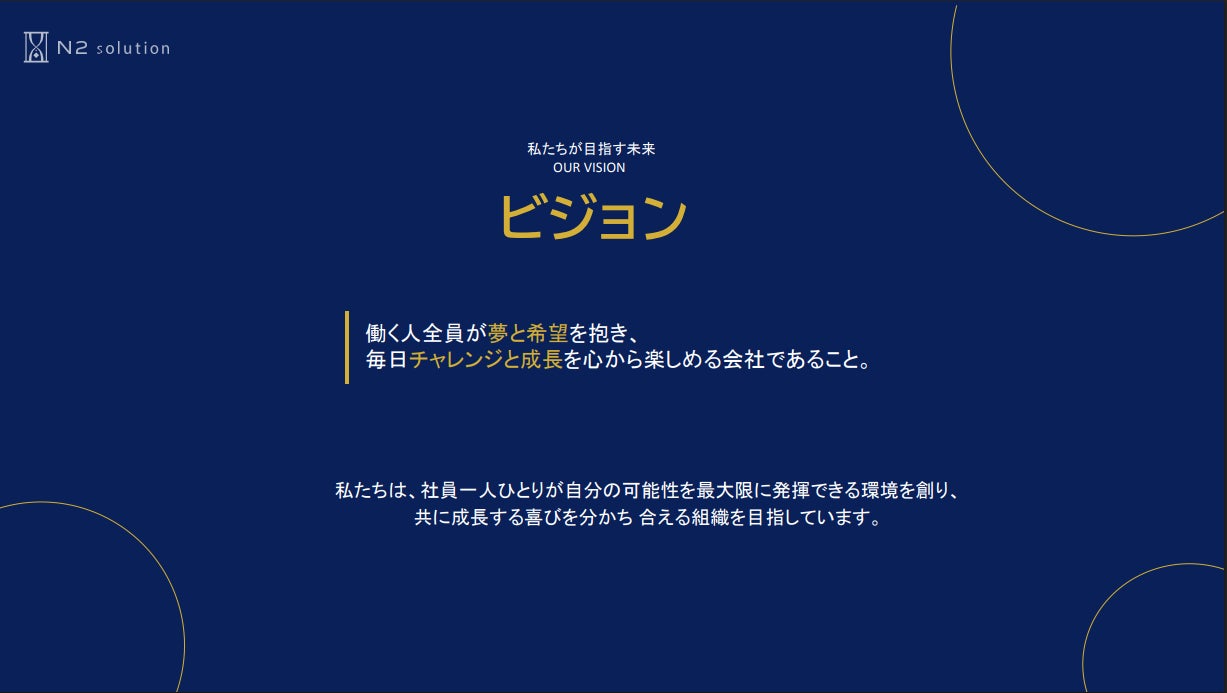 この度の新たなミッション・ビジョン・バリューの策定は、N2ソリューションが次のステージへと進むための重要な一歩です。