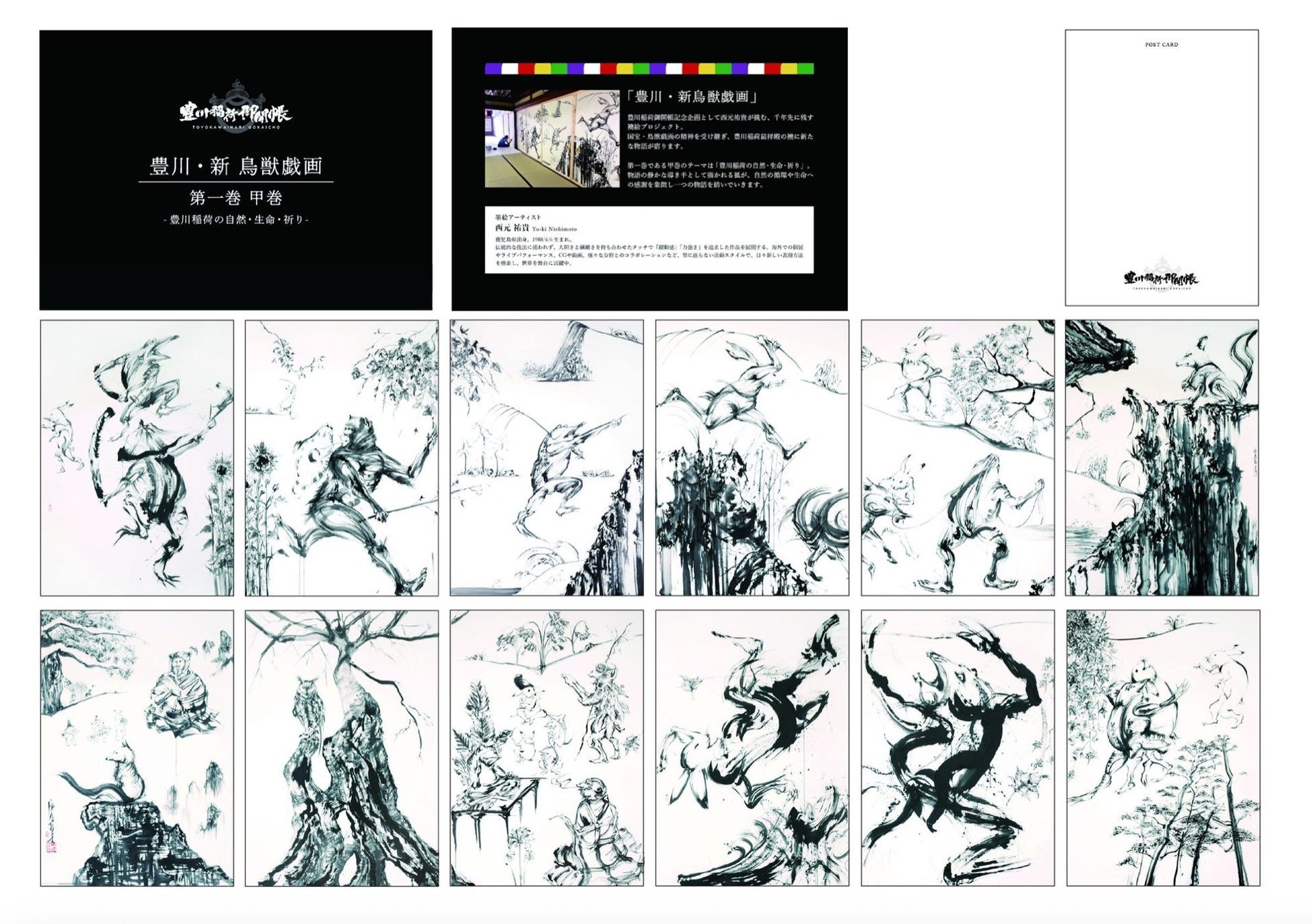 NHK「美の壺」出演や日本画として中学校美術教材にも取り上げられるなど、国内外で注目を集める墨絵師・西元祐貴が挑む本プロジェクト。伝統的な鳥獣戯画に現代の感性を融合させ、豊川稲荷を舞台に新たな物語を紡ぎます。国宝・鳥獣戯画の精神を受け継ぎ、豊川の歴史と祈りを1000年先の未来へ繋ぐ文化創造の新たな一歩です。