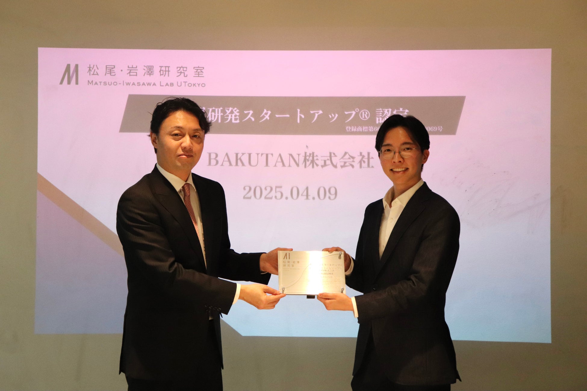 この度、BAKUTAN株式会社が松尾研発スタートアップに認定されましたことを、心より光栄に存じます。