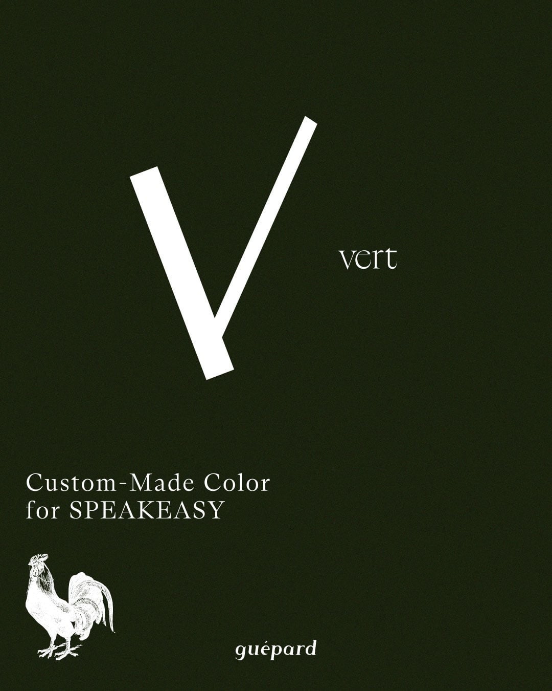 guépardの代表・山村がオーナーを務めるヴィンテージアイウェア専門店 『SPEAKEASY』(神戸・青山)の別注カラー「V」。フランス語で“緑”を意味するvert(ヴェール)の頭文字とった「V」は、ヴィンテージのFrame Franceにおいても希少価値の高いカラー。少しくすんだ深いグリーンが特徴で、クラシカルな佇まいとともに上品なニュアンスを醸し出します。知的で洗練された印象に加え、どこか大人の遊び心を感じさせる絶妙なカラーリングに仕上がりました。