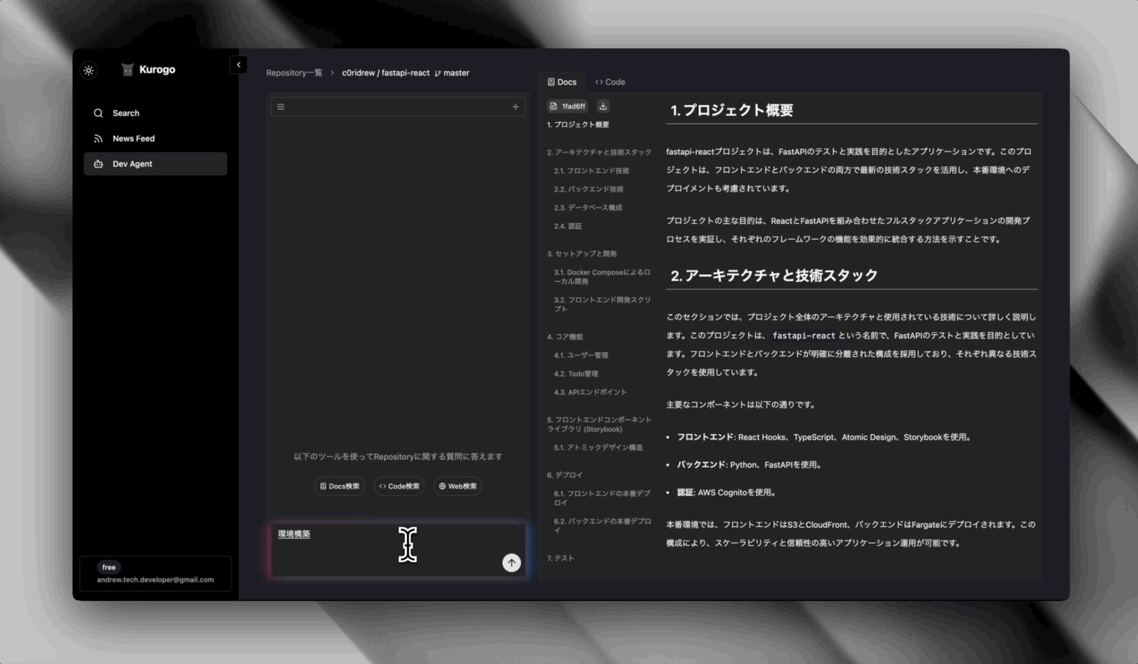 日本発のソフトウェアエンジニア向けAIツール「Kurogo」に新機能「Dev Agent」が登場!開発ドキュメント作成をAIが支援し、開発者の負担を大幅軽減