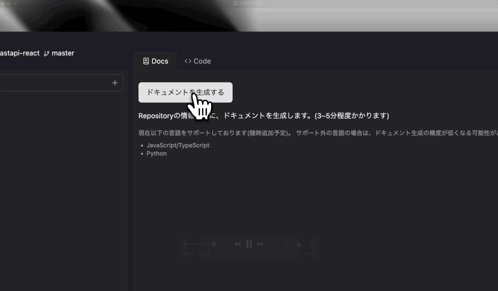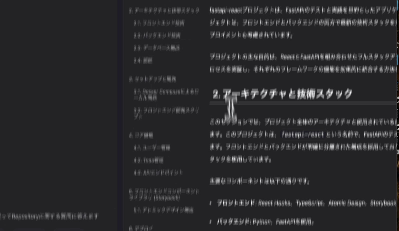 ドキュメント自動更新機能: GitHubリポジトリが更新されるたびに、ドキュメントの内容もAIが自動で更新する機能をリリース予定です。これにより、常に最新のドキュメントが保たれ、開発チームの情報共有がよりスムーズになります。