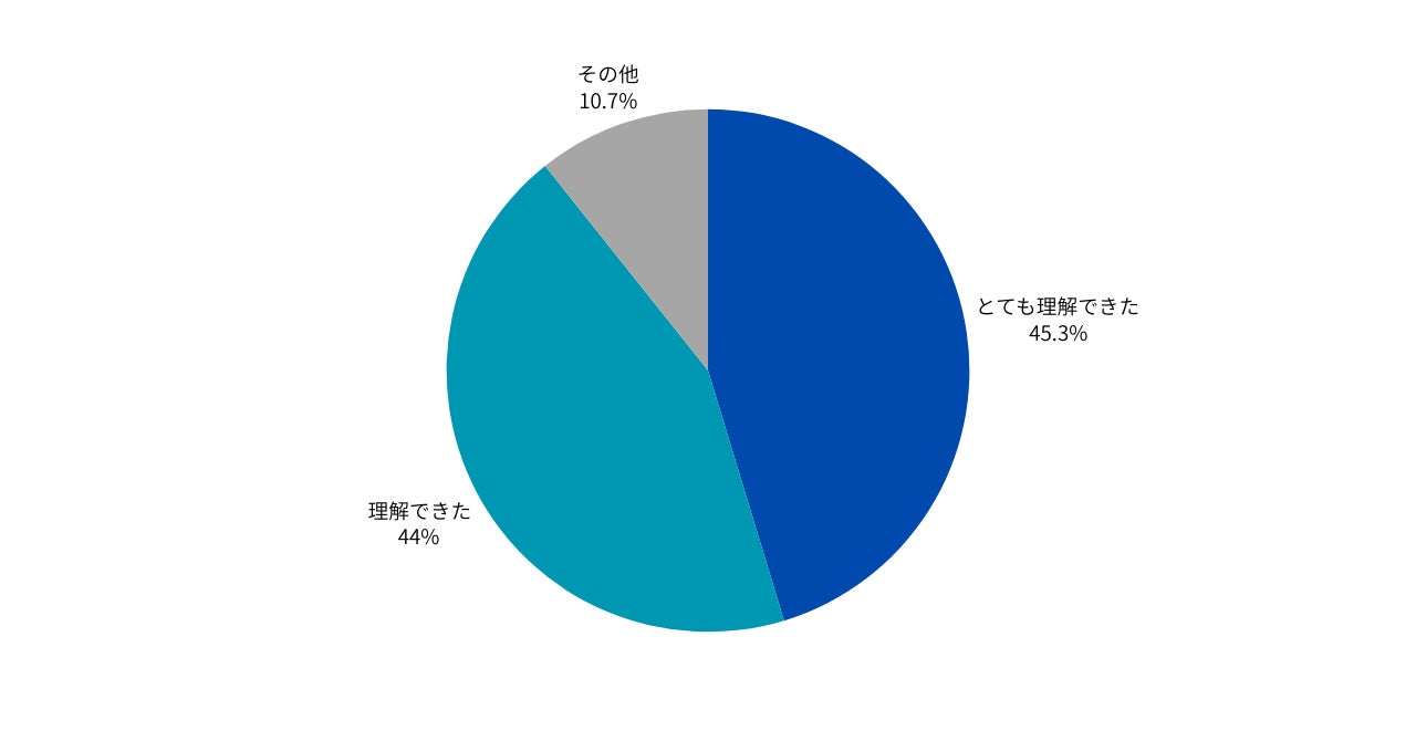 参加した学生へ本企画を通じた、会計事務所の業務内容に関する理解度についてアンケートを実施したところ、約9割の学生が「理解できた」と回答しました。