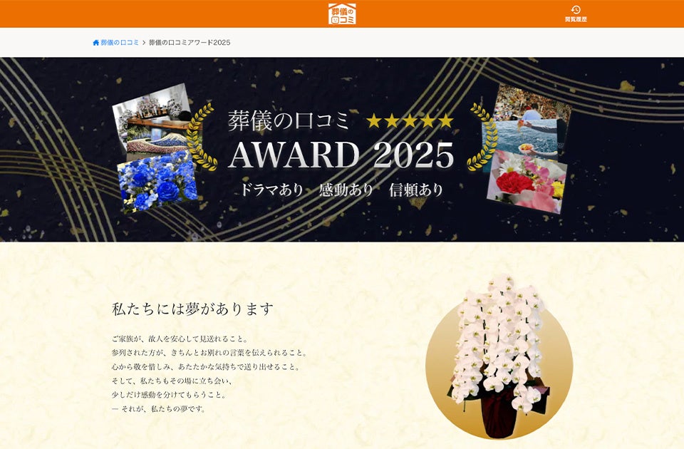 受賞名:葬儀の口コミアワード2025(部門賞)