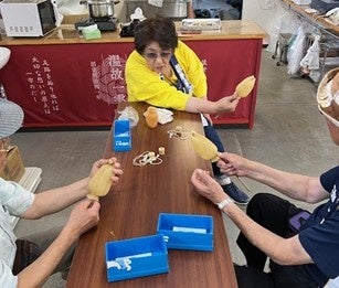 いか徳利(とっくり)でお馴染みの木村商店では、いかを伸ばして徳利状に加工する製造工程が体験できます。完成した後は、出来立ての徳利にお酒を注ぎ、いかの風味を感じながら、くいっと一杯引っかけてみたり…