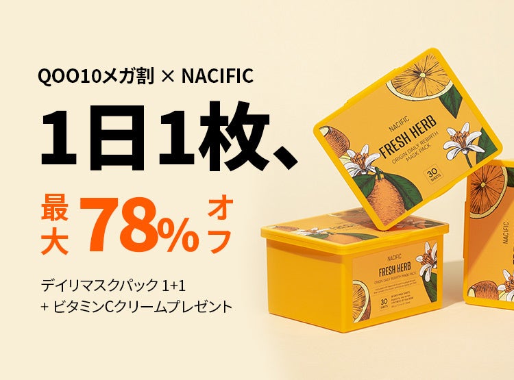 現在、Qoo10のメガ割イベントでは、韓国スキンケアブランドNACIFIC(ナシフィック)の話題の商品「オリジンデイリーマスクパック30枚入り」が、最大78%オフの特別価格で販売中です。さらに、特別イベントとして「1つ購入すると1つ無料」のキャンペーンに加え、「ビタミンCクリーム」のプレゼントも実施中!