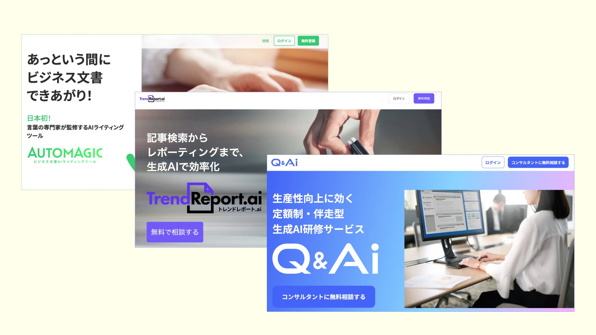 ワークワンダース株式会社(本社:東京都、代表取締役CEO:安達 裕哉)は、最新の生成AI技術を活用した3つのビジネス支援ツール「AUTOMAGIC」「TrendReport.ai」「Q&Ai」を、2025年4月開催の「NexTech Week 2025春」(東京ビッグサイト)にて初出展します。