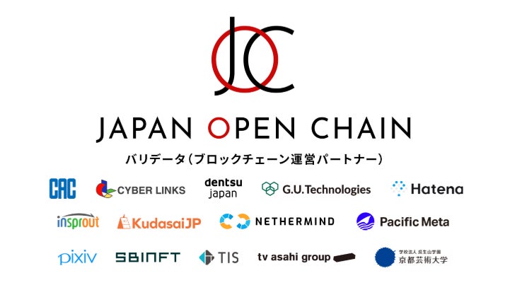 バリデータ(ブロックチェーン運営パートナー)は現在、株式会社電通、G.U.Technologies 株式会社、株式会社 insprout、株式会社 Kudasai、ピクシブ株式会社、TIS 株式会社、テレビ朝日グループの extra mile 株式会社、京都芸術大学、株式会社はてな、株式会社シーエーシー、株式会社サイバーリンクス、SBINFT 株式会社、Nethermind、株式会社 Pacific Meta の 14 社が参画しており、分散的にブロックチェーンが管理され最終的には 21 社となる予定です。