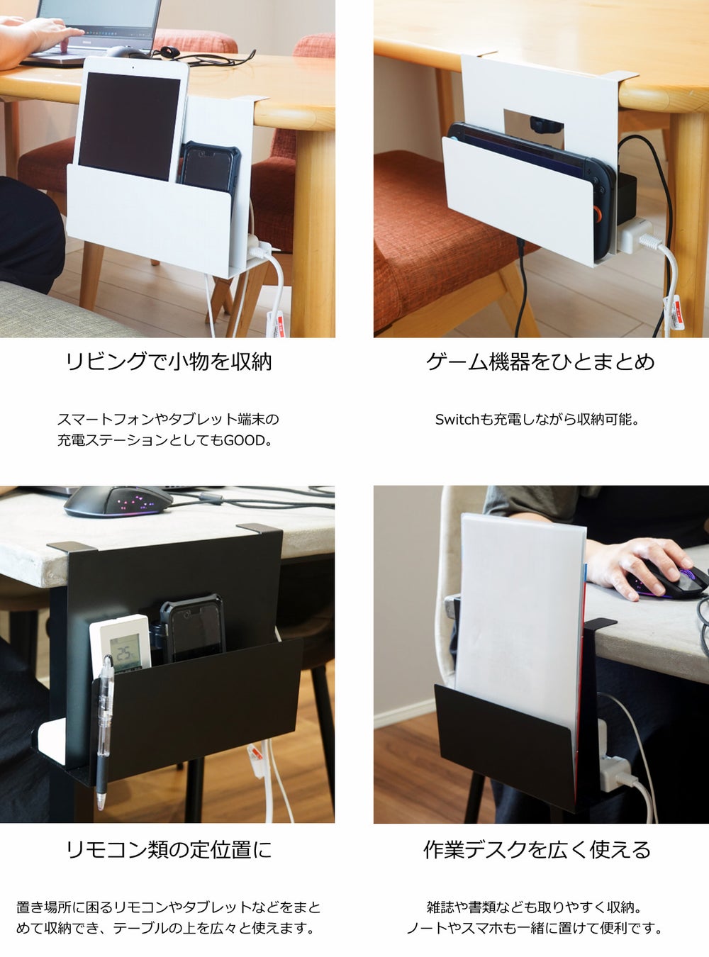 テーブル、デスク、カウンターなど、家のどこにでも取り付け可能です。