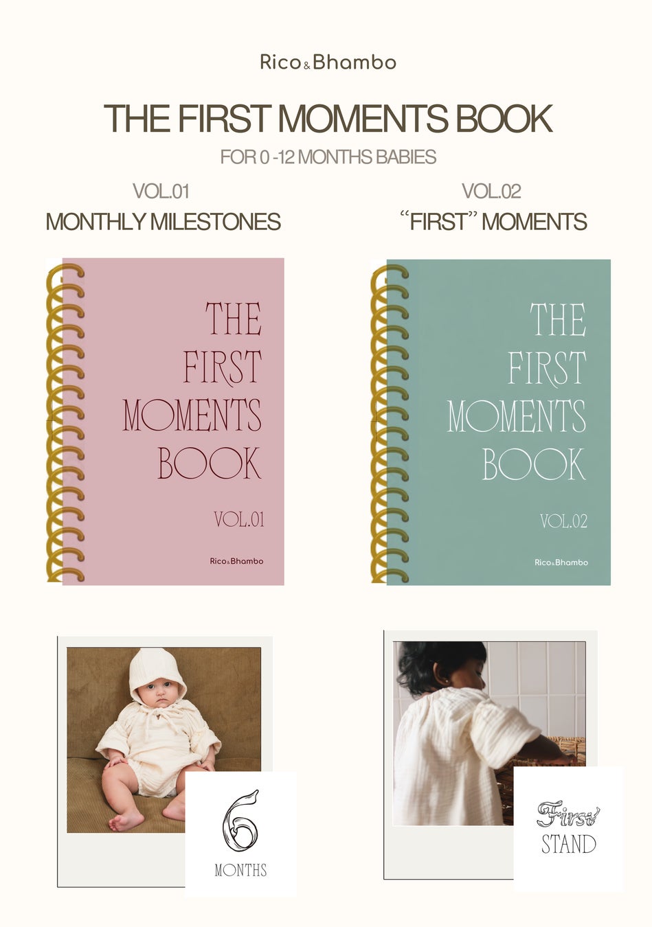 月齢フォトグッズ用の「Vol.01 Monthly Milestones」と、成長の瞬間を22項目記した「Vol.02 First Moments」を、今回初お披露目致します。