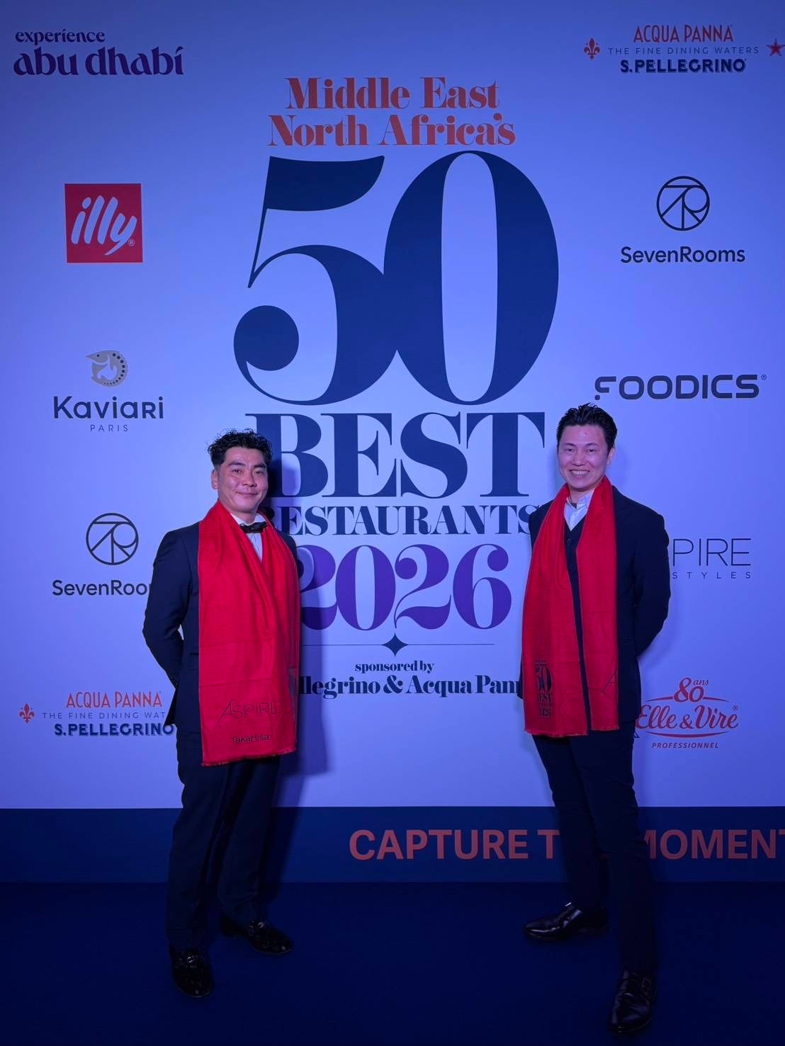国際的な評価も年々高まりを見せており、2025年10月にイタリア・ミラノで授賞式が開催された世界的ガストロノミーアワード「The Best Chef 2025」にて、“World-Class(世界水準)”の〈2ナイフ〉を受賞。さらに、「MENA’s 50 Best Restaurants 2026」では堂々の第23位を獲得しました。
