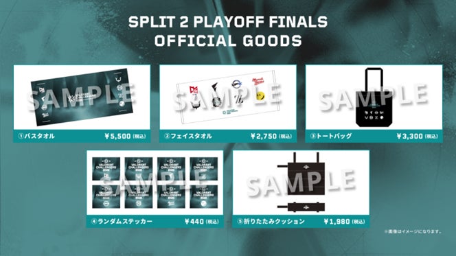 オフライン会場限定で販売する大会オフィシャルグッズは、「VALORANT Challengers Japan 2025 Split 2 Main Stage」に出場した8チームのロゴが入ったフェイスタオルやトートバッグなどをご用意いたしました。
