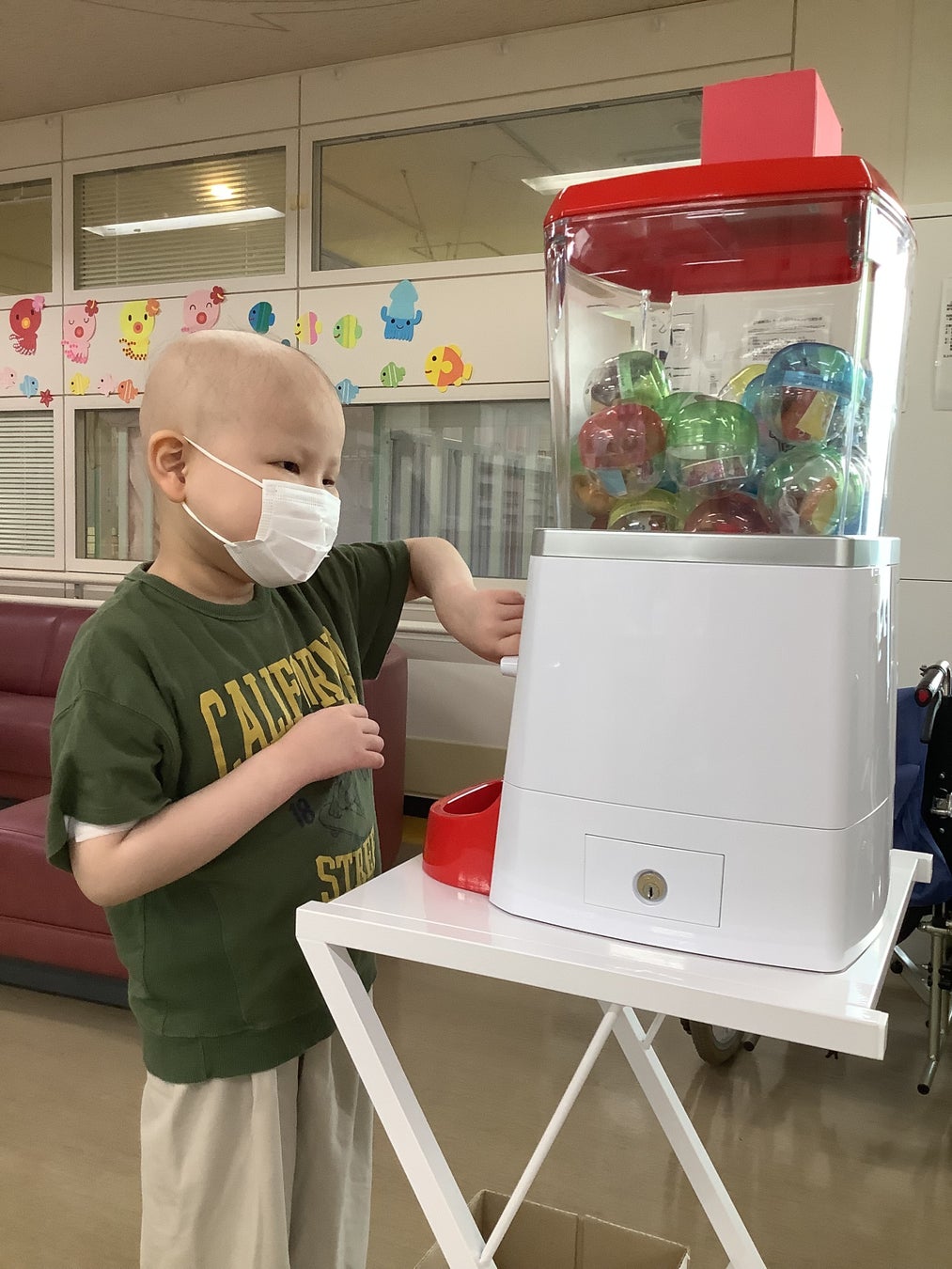 現在13病院に設置・運用していますが、「ガチャガチャがひけるよ!」と声掛けをすると、治療を頑張るぞ!と子ども達の表情がぐっと変わる効果があるというお声を医療現場より頂いています。