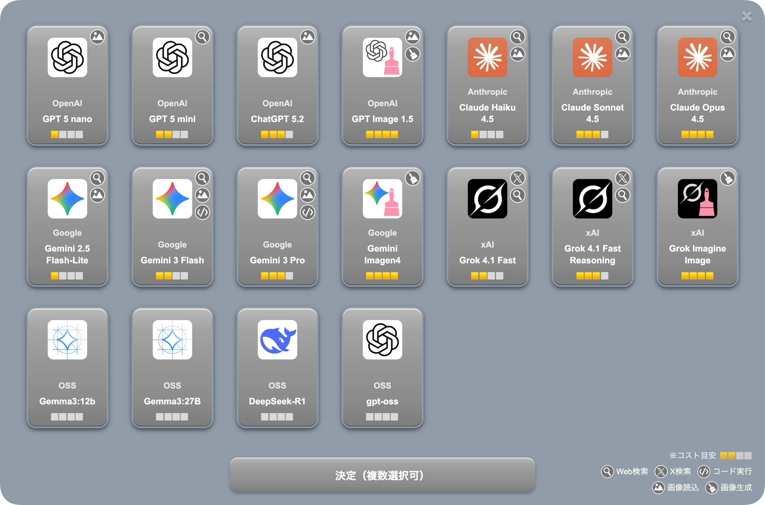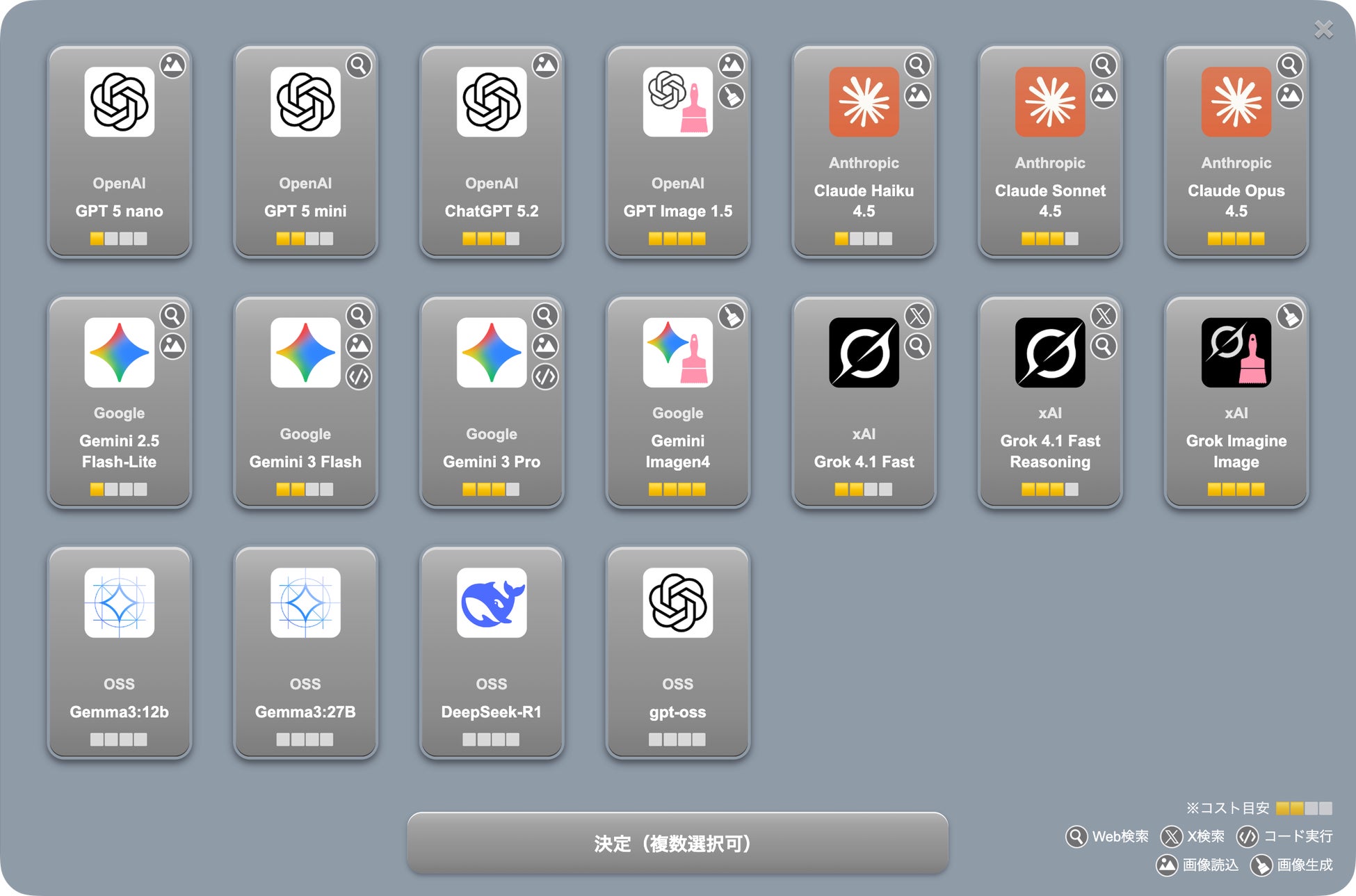③ 各種AIモデルを選択可能。複数モデルの比較もできる