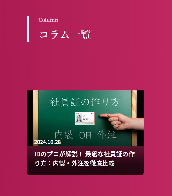 IDカードを新規でご検討のお客様や現在運用中で見直し予定のお客様に向けて、必要な情報をコラムとして発信予定。IDカード発行運用は、面倒なことも多い側面もあるため効率的に導入・運用ができるような情報を発信し積極的にお客様をサポートしていく。