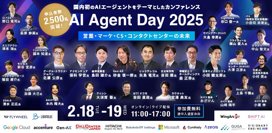 生成AI技術を活用したAIエージェントによる社会実装を推進し、顧客体験(CX)の変革を目指す一般社団法人AICX(AI Customer Experience)協会(東京都、代表理事:小栗伸、小澤健祐、以下、AICX協会)は、2月18日・19日に開催する国内初のAIエージェントに特化したオンラインカンファレンス「AI Agent Day 2025」において、経済産業省 商務情報政策局 情報技術利用促進課 調査官 島田雄介氏ほかの6名の追加登壇が決定したことをお知らせいたします。グーグル・クラウド・ジャパン、アクセンチュア、日立製作所など、業界のトップランナーが登壇し、AIエージェントにおける最新の技術動向、社会実装の課題、企業戦略、政策の展望などについて議論します。