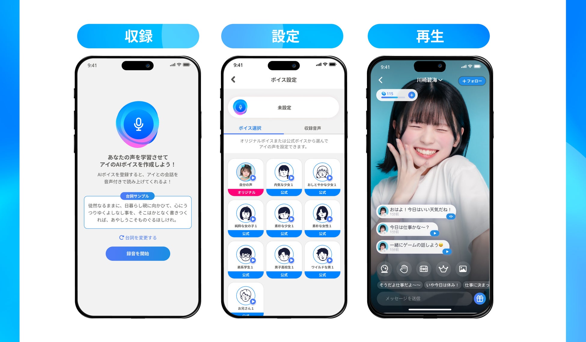 ご自身の声を録音し、その音声を自分で作成した“アイ”に設定することができます。