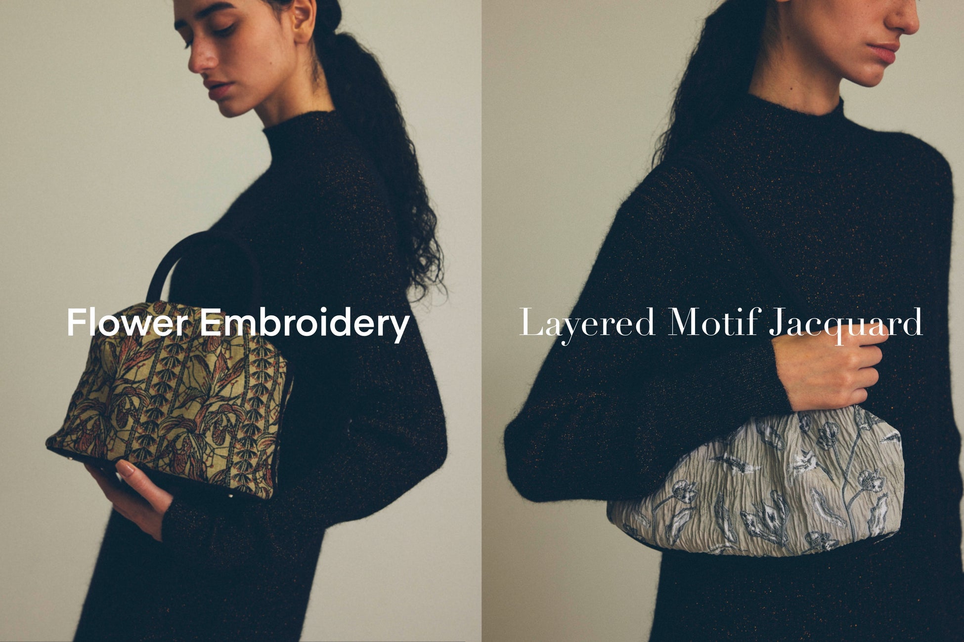 本コラボレーションでは、otnek & ebanatの人気定番バッグ人気定番バッグ「SUNA(3ウェイ クラッチバッグ)」と「GOULT S(ボストントート スモール)」、「GOULT L(ボストントート ラージ)」に、EBONYが産地の職人とともに開発した独自のテキスタイルのアーカイブを採用。限りある資源を大切にし、時間をかけて丁寧に作られたものの価値を再定義する特別なコレクションです。