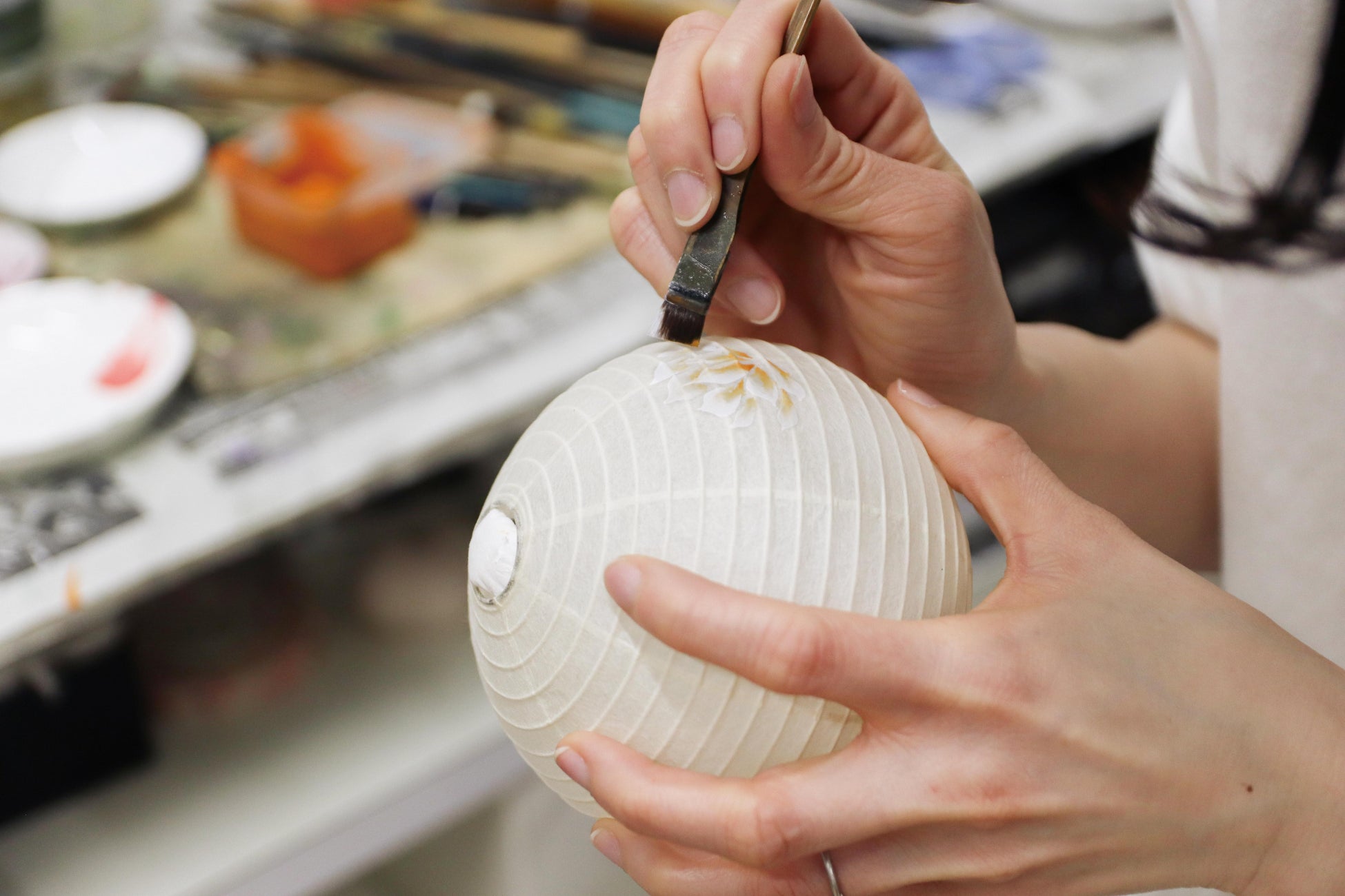 手描きの提灯絵が美しいコードレス盆提灯tocco(トッコ)の製造メーカー「シラキ工芸」について、写真や動画で紹介しています。動画では手漉き和紙を貼り付け火袋を作る過程や、繊細な筆使いで仕上げる絵付けなど、見応えあるシーンをご覧いただけます。