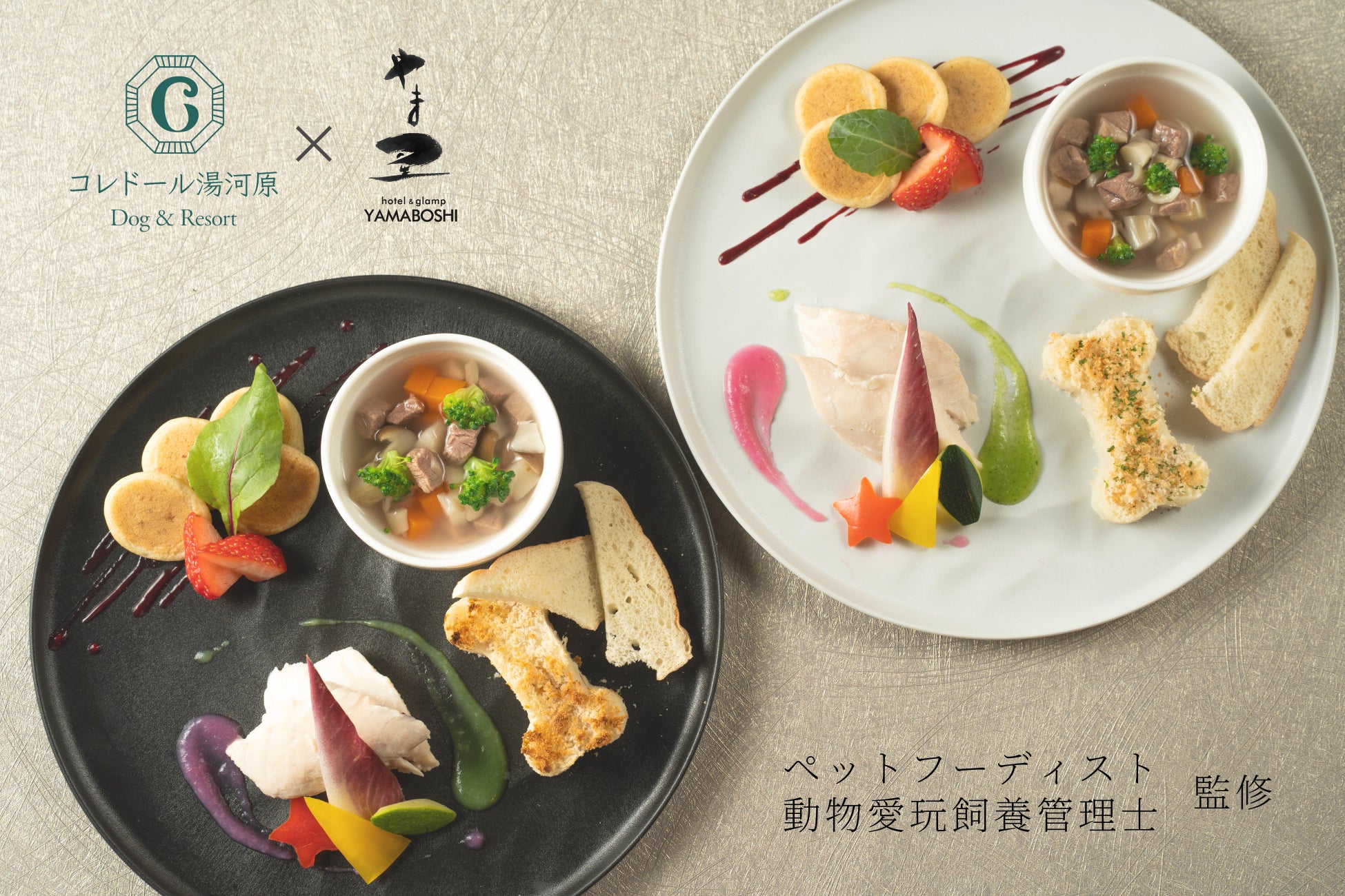 やま星(長野・阿智村)は、より良い愛犬向けホテルを目指す取り組みの一環として、コレドール湯河原(神奈川・湯河原)とのコラボレーションを決定、それぞれの地元の食材を使用してコラボメニューを開発しました。
