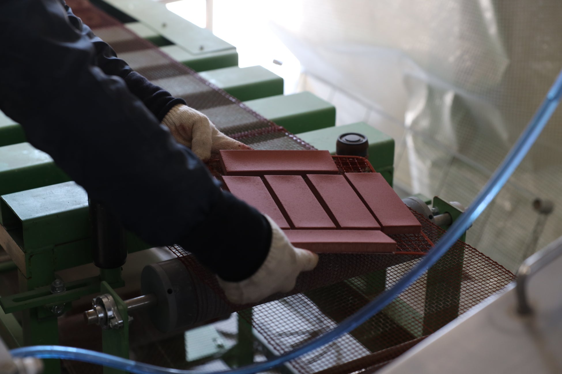 通常の1250℃より低い950℃で低温焼成を行い焼成時間を半分(12時間→6時間)に短縮することで、エネルギー使用量を60%削減できました。環境に優しく高性能なタイルです。