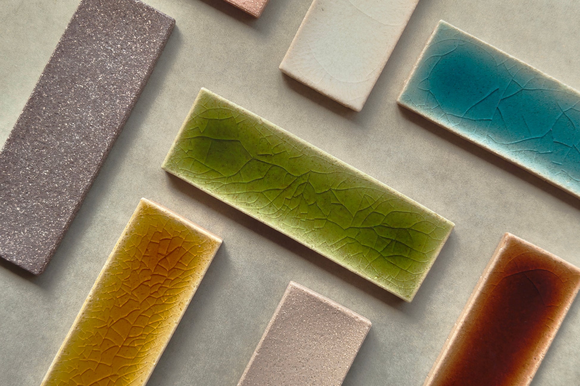 美濃焼の器からインスピレーションを受け、Uoolタイル1枚1枚の中に釉薬の「溜まり」を作り、伝統的な風合いを作り出しています。グラスウールを配合した特殊な低温貫入釉薬を開発し、釉薬の厚み変化によって奥行きのあるグラデーションを実現しました。