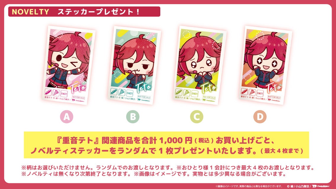 『重音テト in KIDDY LAND』限定ノベルティステッカーをランダムで1枚プレゼントいたします。(最大4枚まで)