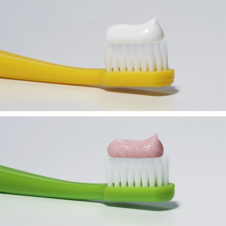 定番品で人気のフレーバーの「02 ヨーグルトミント」、「03 ヴァーベナミント」がトラベルセットに。「02 ヨーグルトミント」は「美白*+むし歯予防*(泡立つタイプ)」、「03 ヴァーベナミント」は「美白*+口臭予防(心地よいスクラブタイプ)」でお悩み別に選べる。