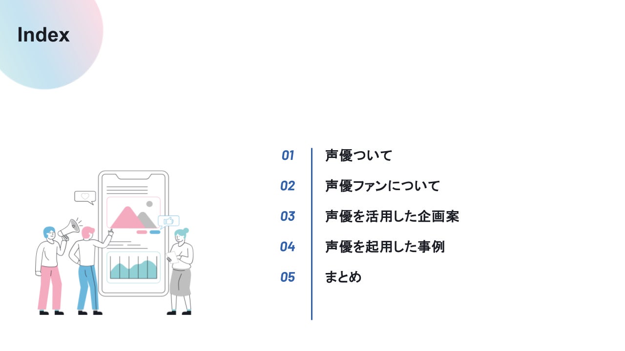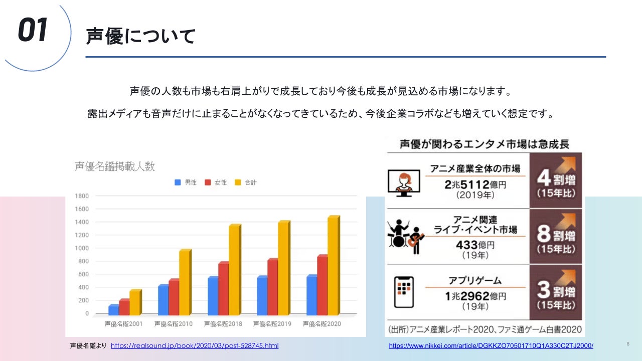 また、声優のSNS活動や市場での需要については、資料に詳しく記載しております。