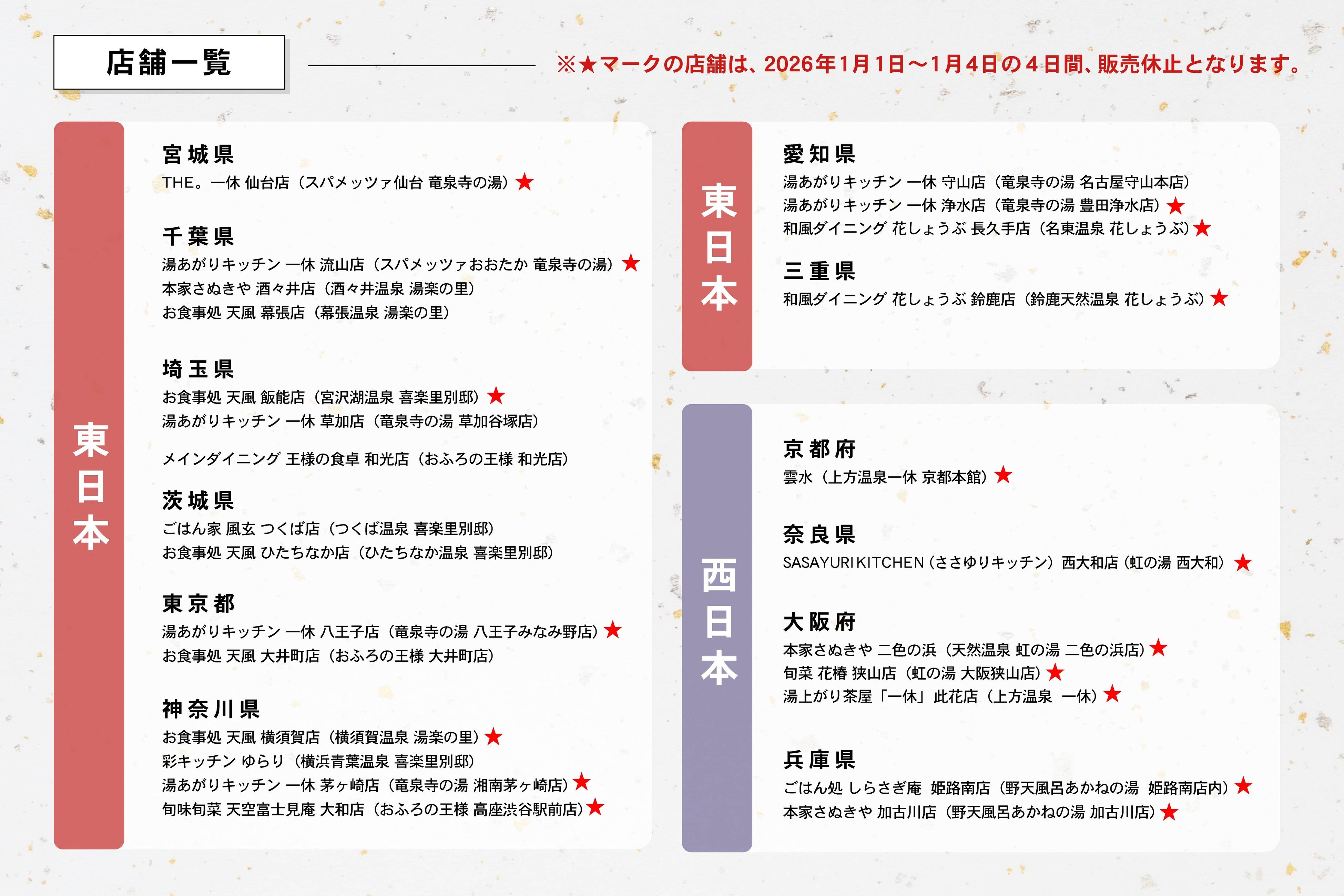 ※一部店舗にて、2026年1月1日〜1月4日の年始期間は販売を休止いたします。