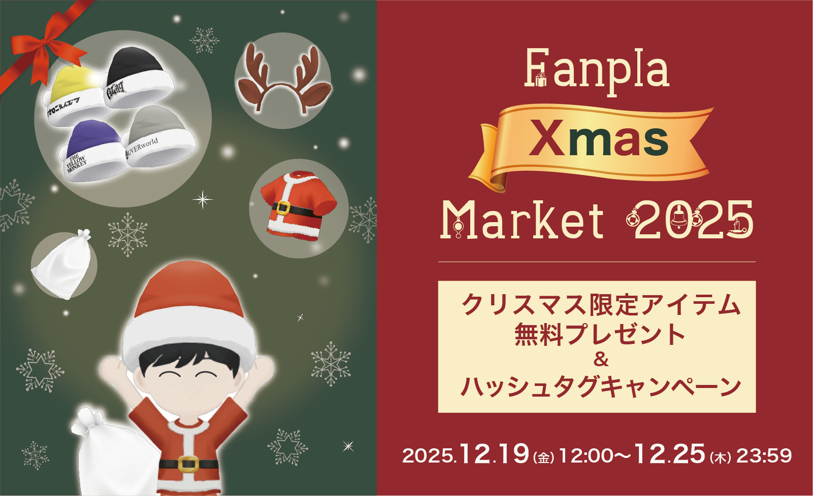 ブロックチェーンを用いたサービスの企画、開発を手掛ける株式会社Fanpla(本社:東京都渋谷区、代表取締役:平井威充、以下「当社」)は、当社が運営するエンターテインメントマーケットプレイス「Fanpla Market」(https://fanplamarket.com/)内にて、2025年12月19日(金)より、クリスマスシーズンの特別企画『Fanpla Xmas Market 2025』を開催していることをお知らせいたします。