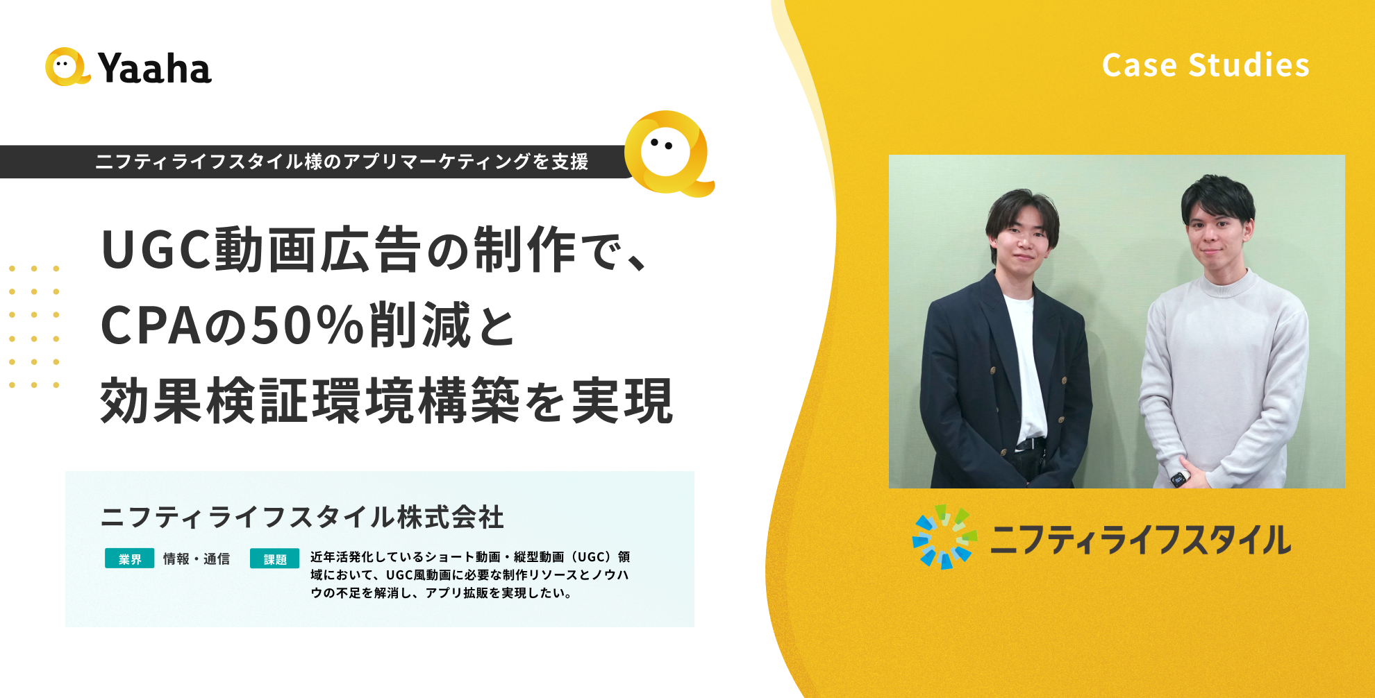ショート動画領域におけるリソースとノウハウの不足を、Yaahaの運用支援が解消。獲得効率の最適化と運用体制の強化を同時に実現しました。