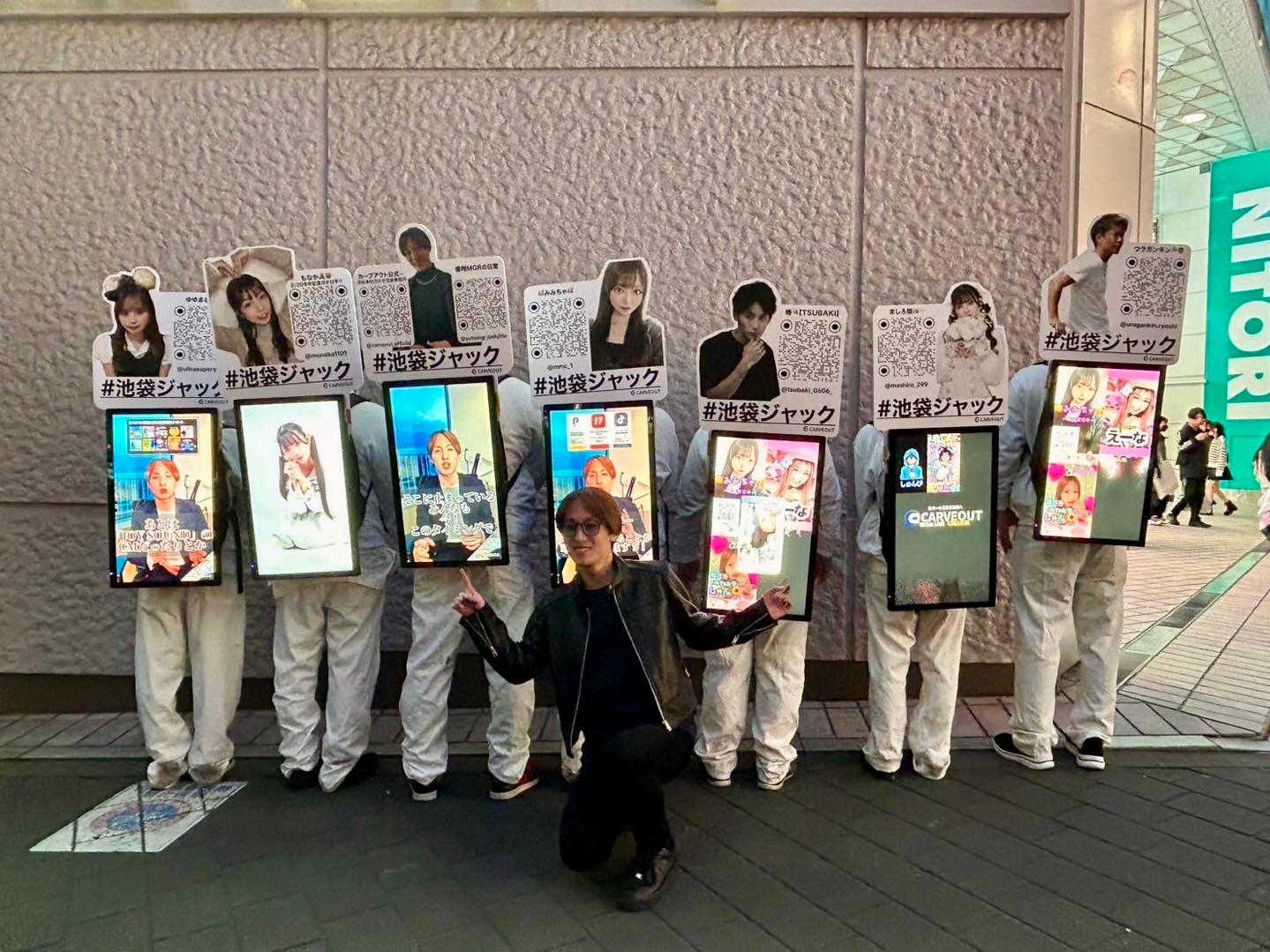 サインボードやモバイルディスプレイを身にまとったアドウォーク隊が、池袋駅周辺を練り歩き、リアルとデジタルを融合したインパクトのあるプロモーションを実現しました。