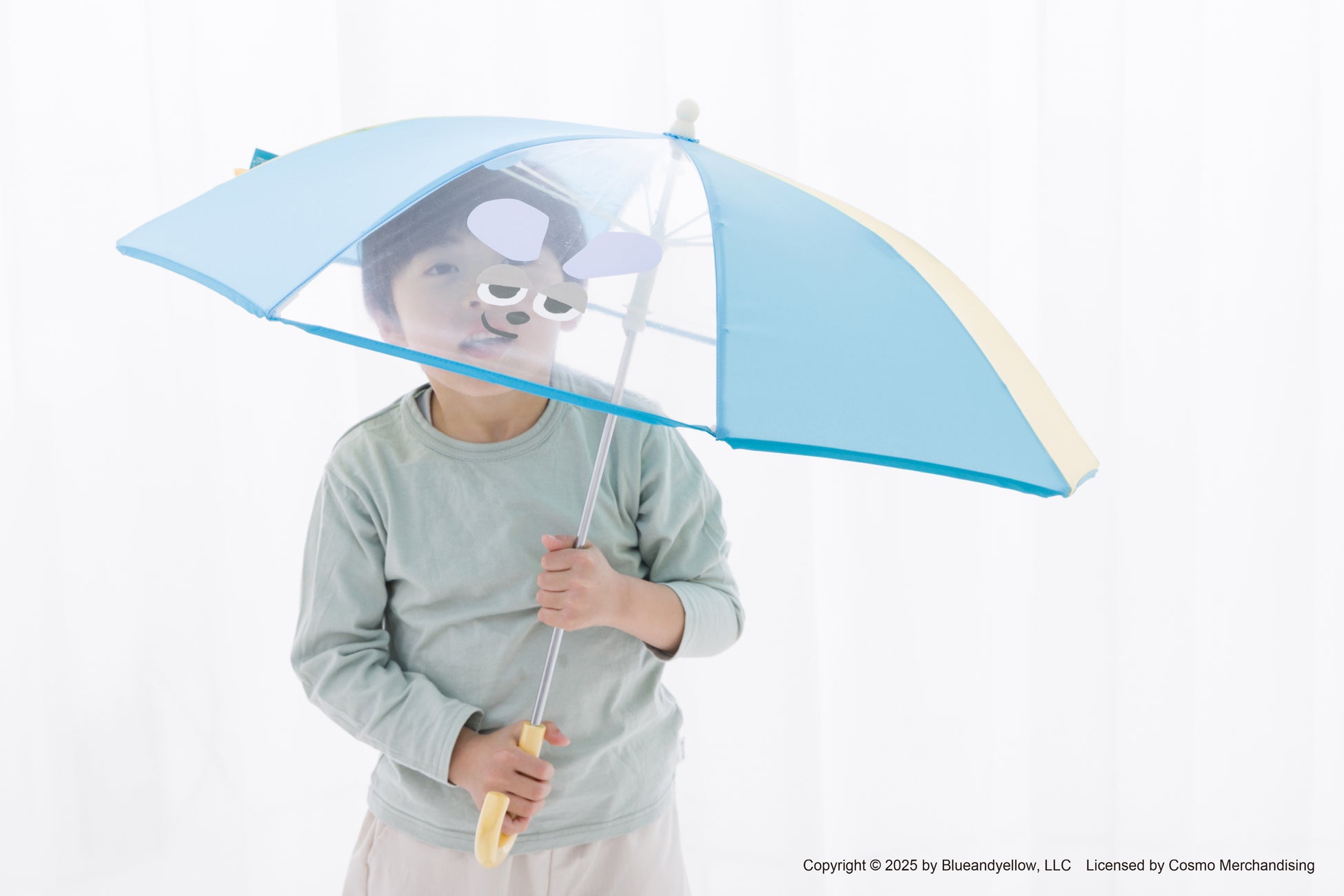 傘は気持ちが楽しくなるツートンの配色に加え、透明窓にフレデリックのお顔を大きくプリント。透明窓を覗けばフレデリックのまねっこができます。