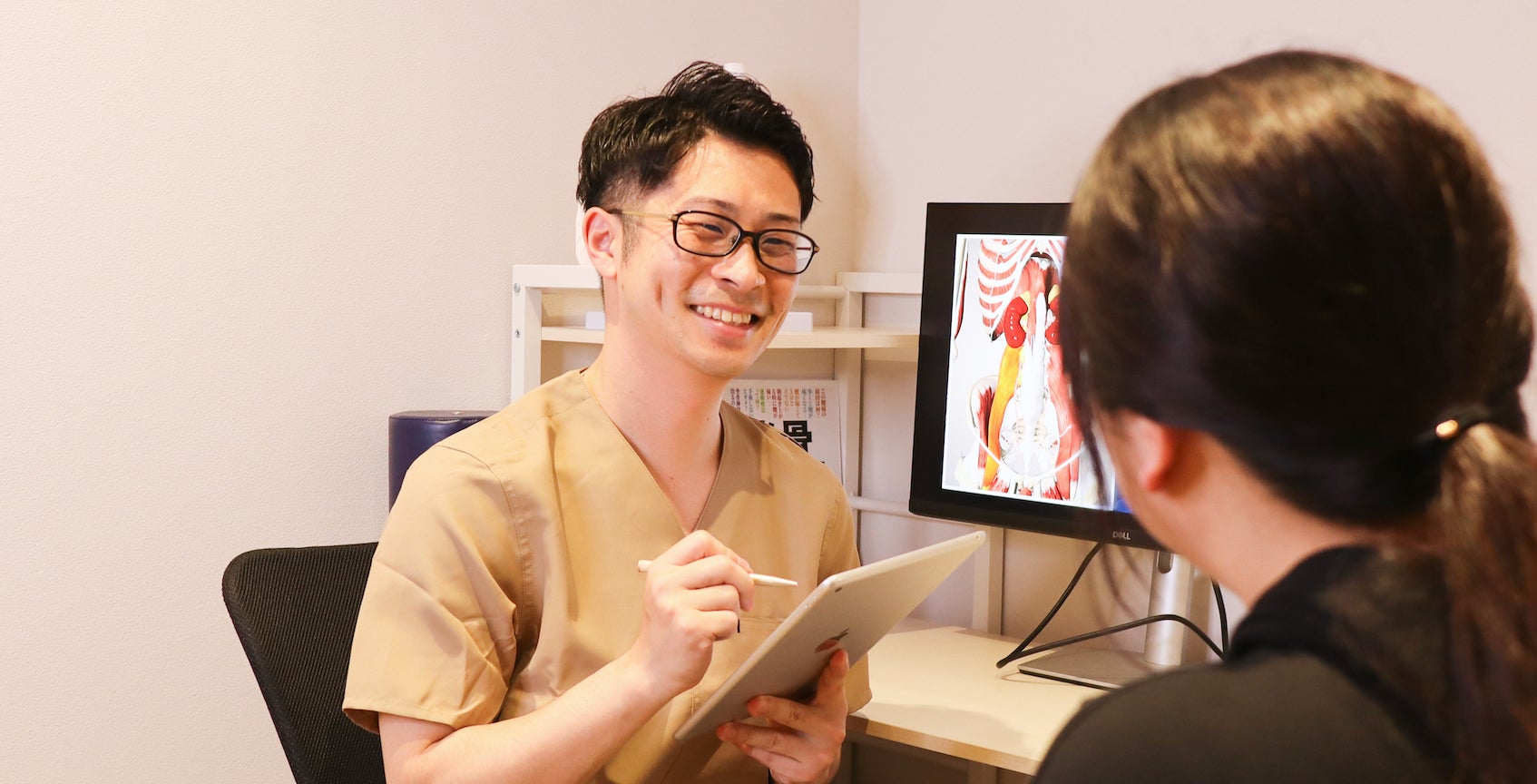 最初に経験・実績豊富なセラピストが、丁寧なヒアリングを行います。ヒアリングを通して、治療方針を相談しながら、決めていきます。