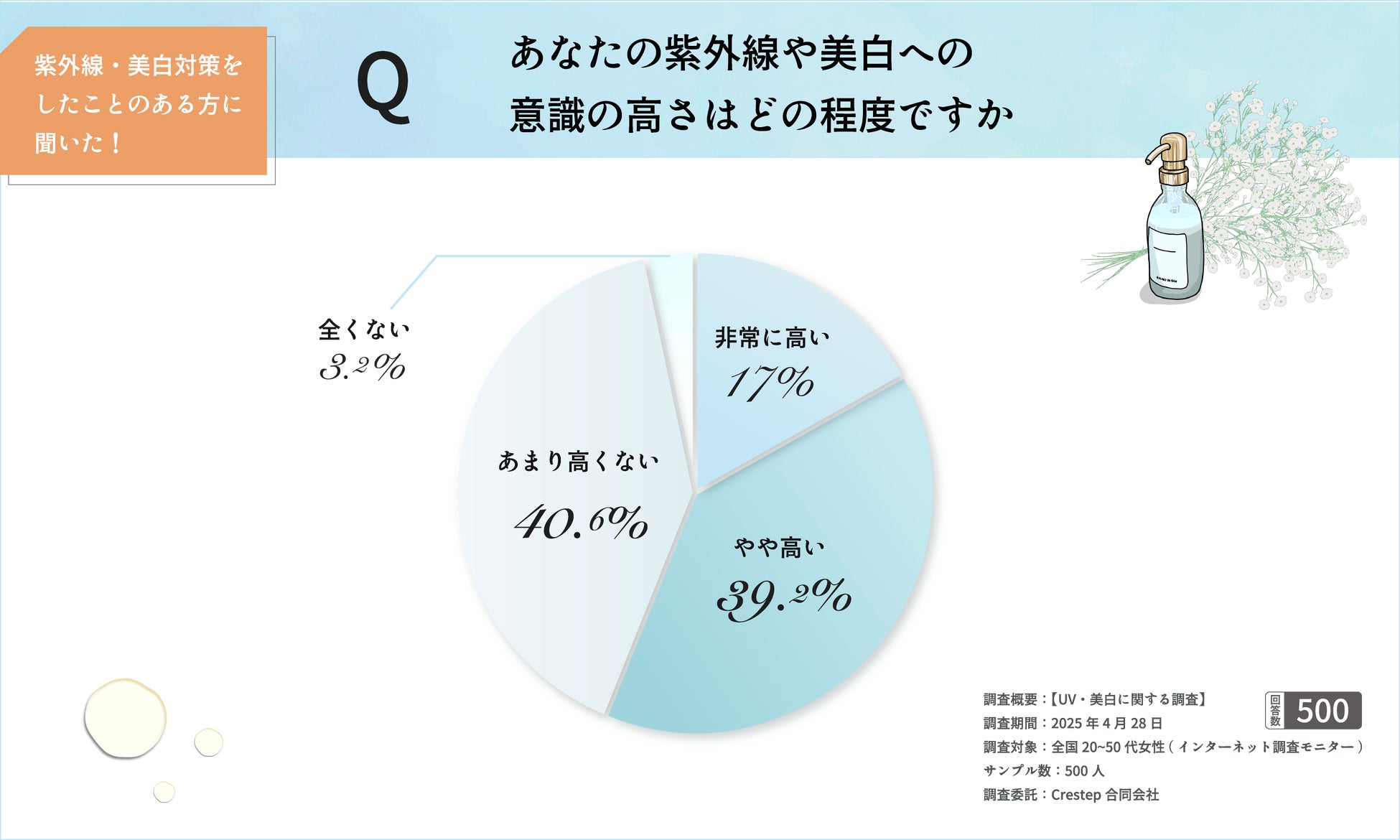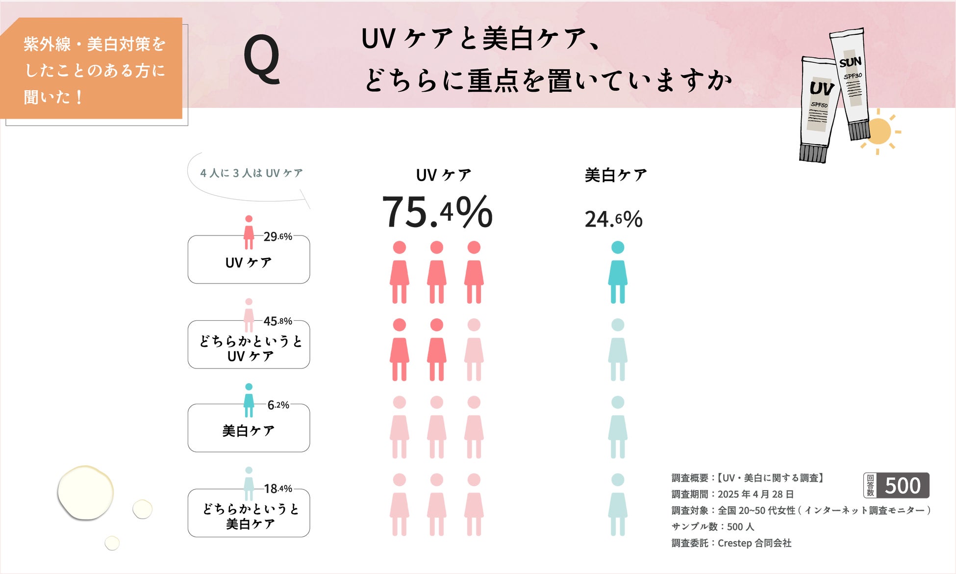 紫外線・美白対策経験者500名に調査、意識は高いが理解には差。重視するのはUVケアが多数派に