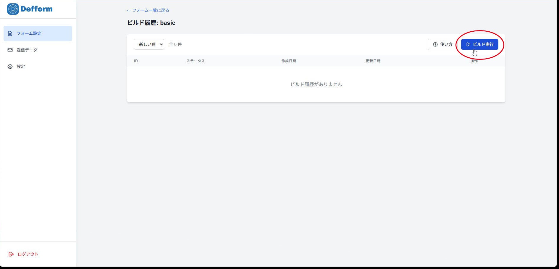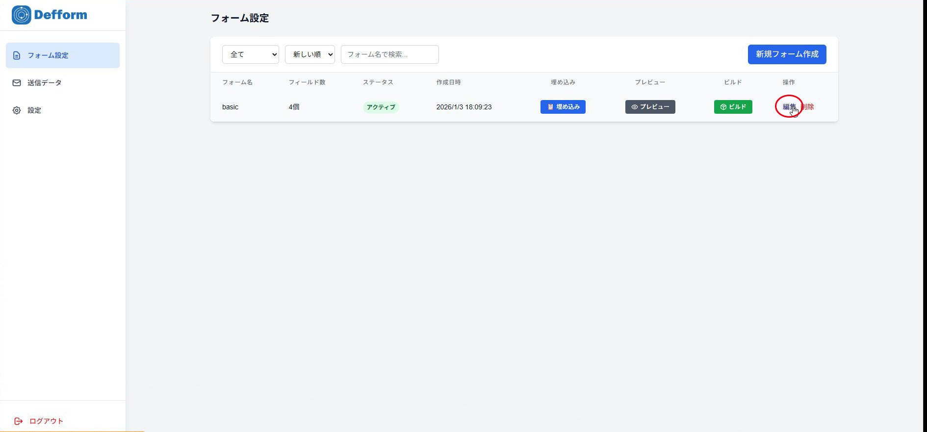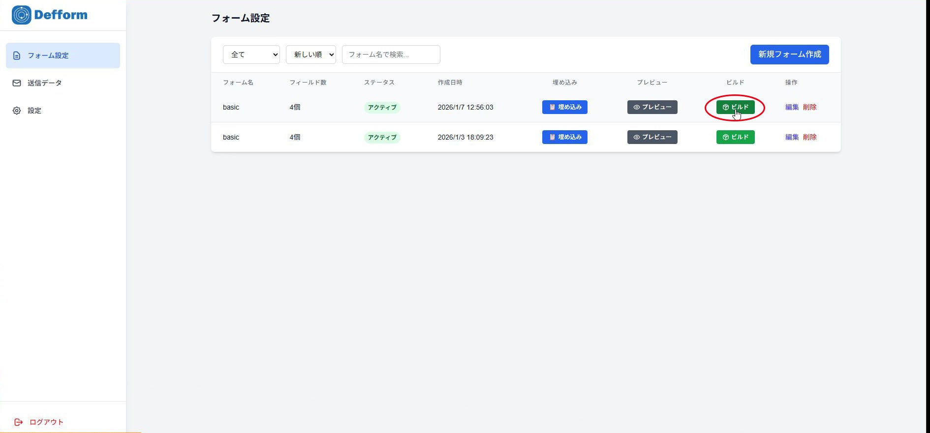 4.フォーム一覧からビルド画面へ入ります。