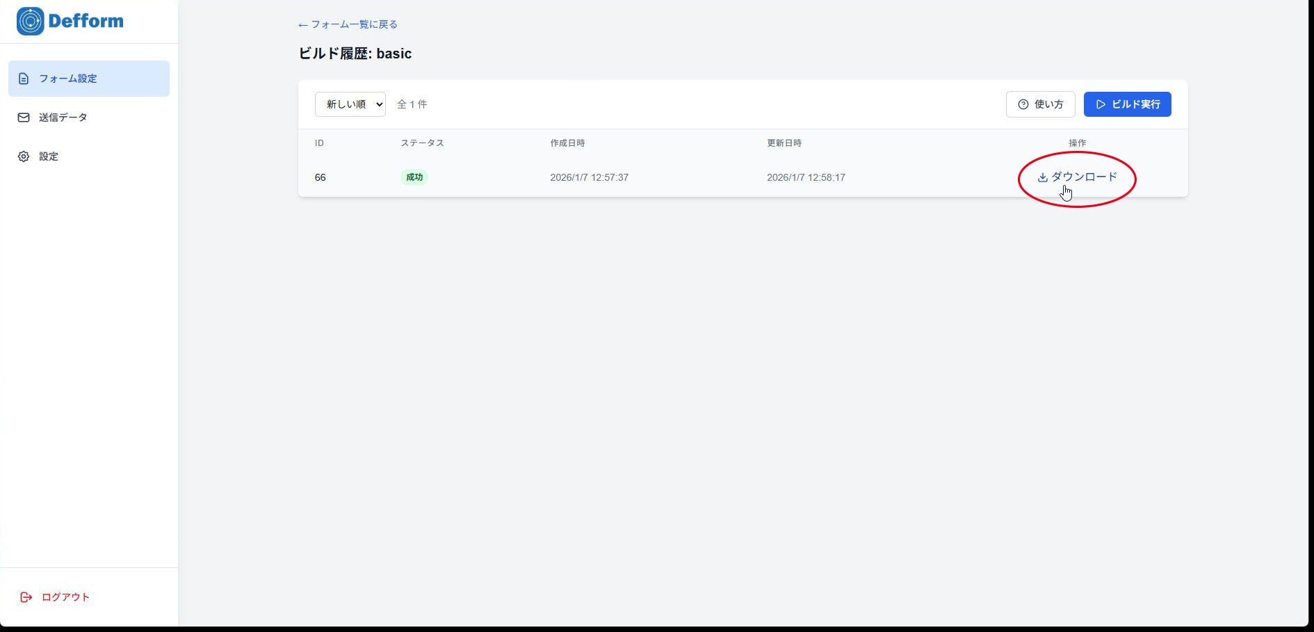 6.ビルドが完了したら「ダウンロード」を押してください。