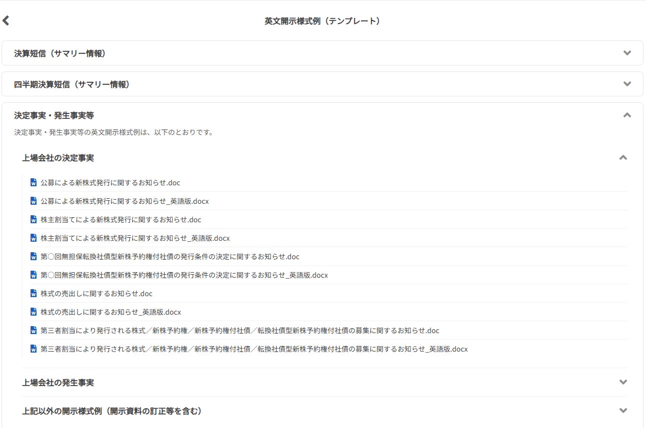 1.英文開示様式の定型文テンプレートをダウンロード可能に