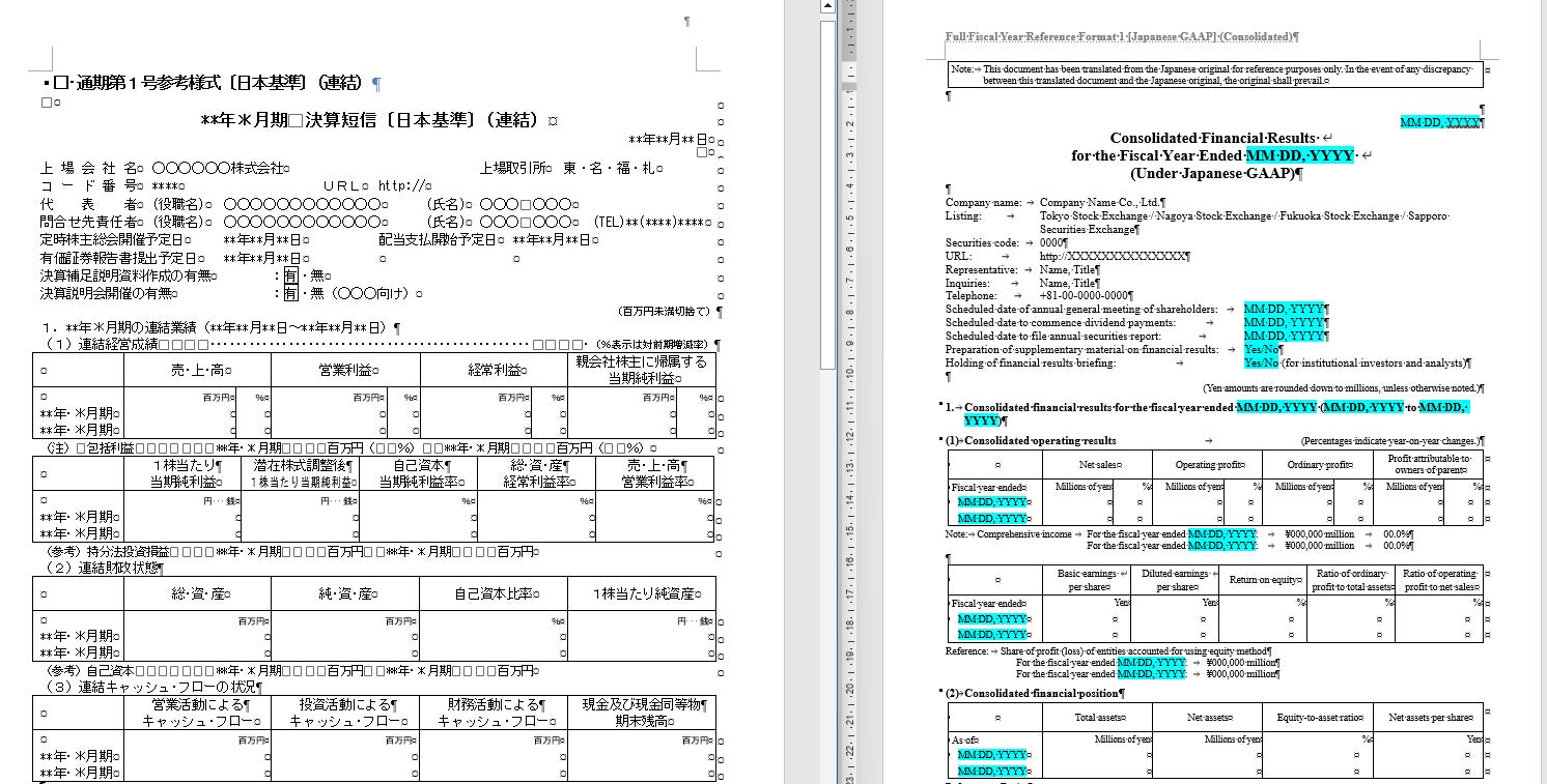 決算短信(通期・四半期、日本基準/IFRS/米国基準)をはじめ、適時開示およびコーポレート・ガバナンス報告書など、主要な開示様式に対応した定型文テンプレートを提供しています。