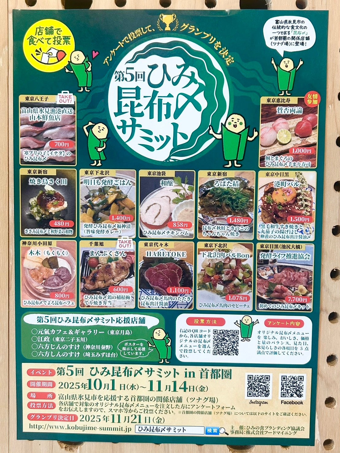 「第5回ひみ昆布〆サミット」(主催:ひみの食ブランディング協議会、受託:株式会社フードマイニング)が、2025年10月1日〜11月14日まで開催中。
