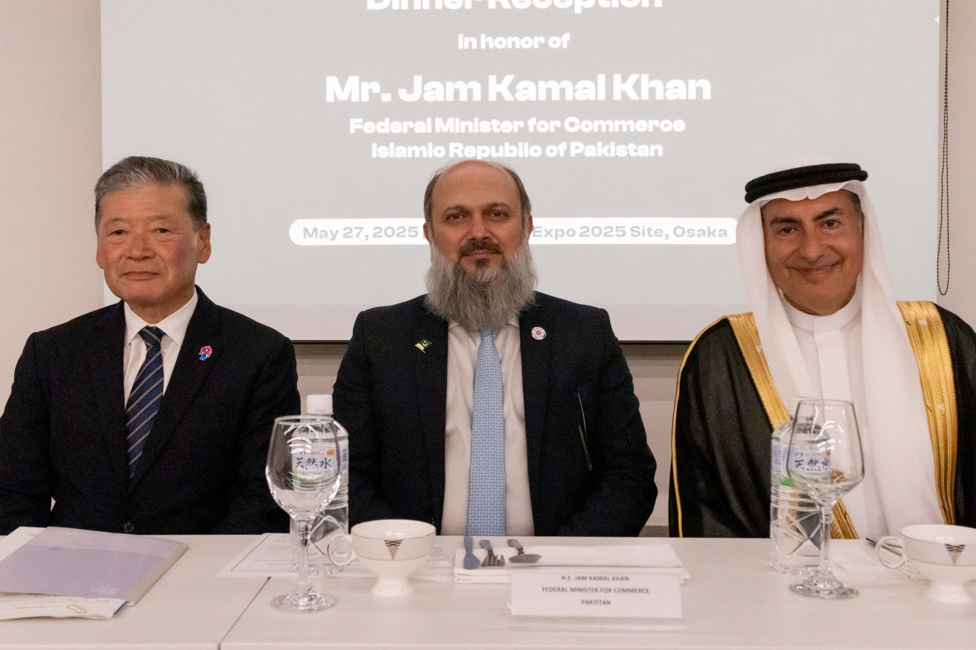 2025年5月27日、大阪・関西万博内にて、公式訪問中のパキスタン・イスラム共和国のジャム・カマル・カーン連邦商業大臣による、貿易・投資・観光・文化外交を促進するための多国間交流が行われました。当日は万博内の会場にて、ジャム・カマル・カーン連邦商業大臣を囲む交流ディナーが開催され、各国の外交団、貿易代表、ビジネスリーダー、そして国際パビリオンの責任者たちが一堂に会しました。サウジアラビア駐日大使、フランスのコミッショナー・ジェネラル、トルコやアゼルバイジャンなど25ヶ国以上のパビリオンディレクター、2025年日本国際博覧会協会の幹部職員も出席し、パキスタンが国際社会との経済・文化交流に積極的に取り組む姿を、各国に印象づける機会となりました。