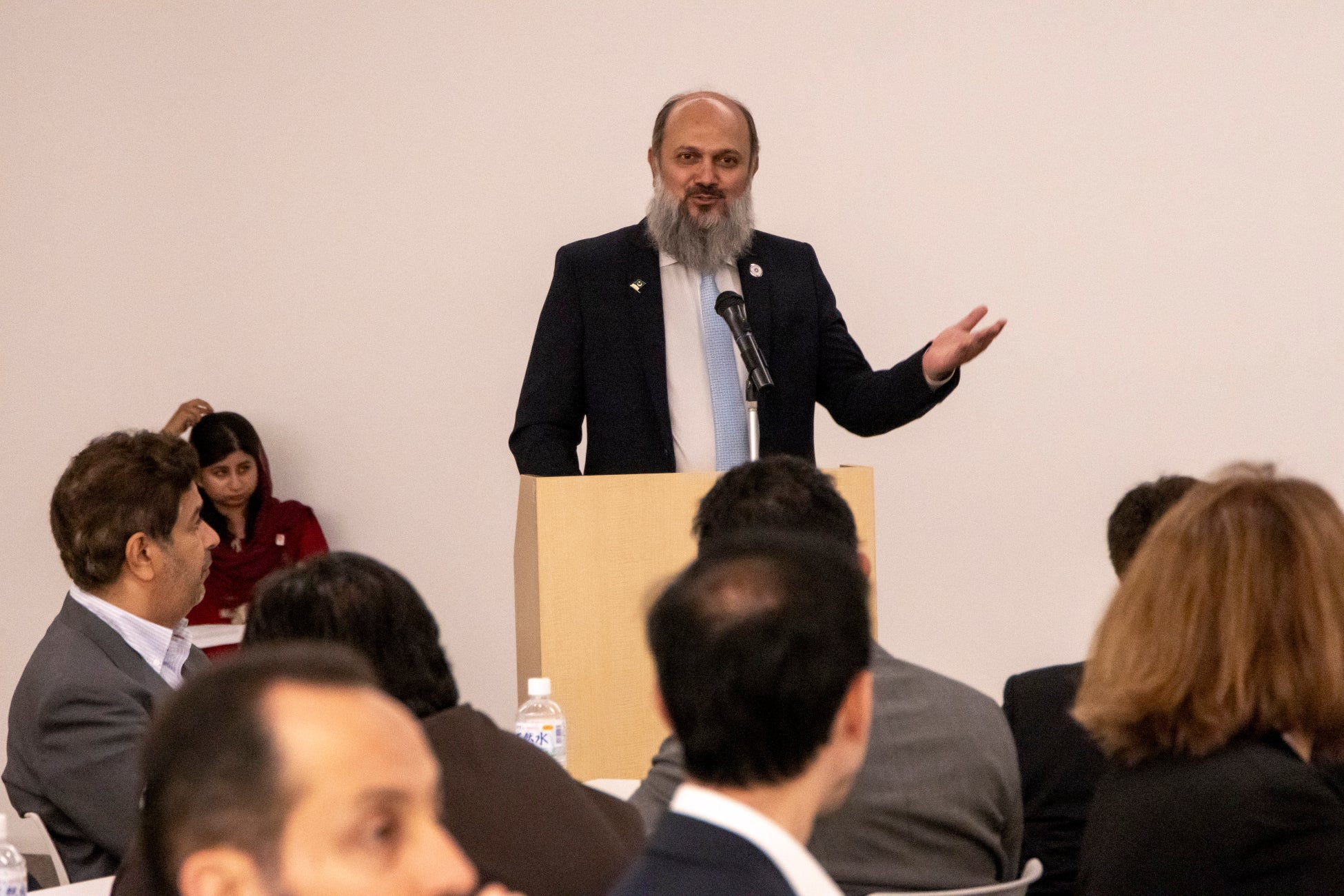 また、日本在住のパキスタン人コミュニティ、学術関係者、著名な実業家、メディア関係者など、多彩な人々が顔を揃えました。大臣は挨拶の中で、パキスタンが持つ貿易の可能性や投資先としての魅力、そして多彩な文化遺産について語りました。特に観光分野については、風景や遺跡を紹介する臨場感ある映像を使いながら、観光地の美しさと多様性を伝えました。