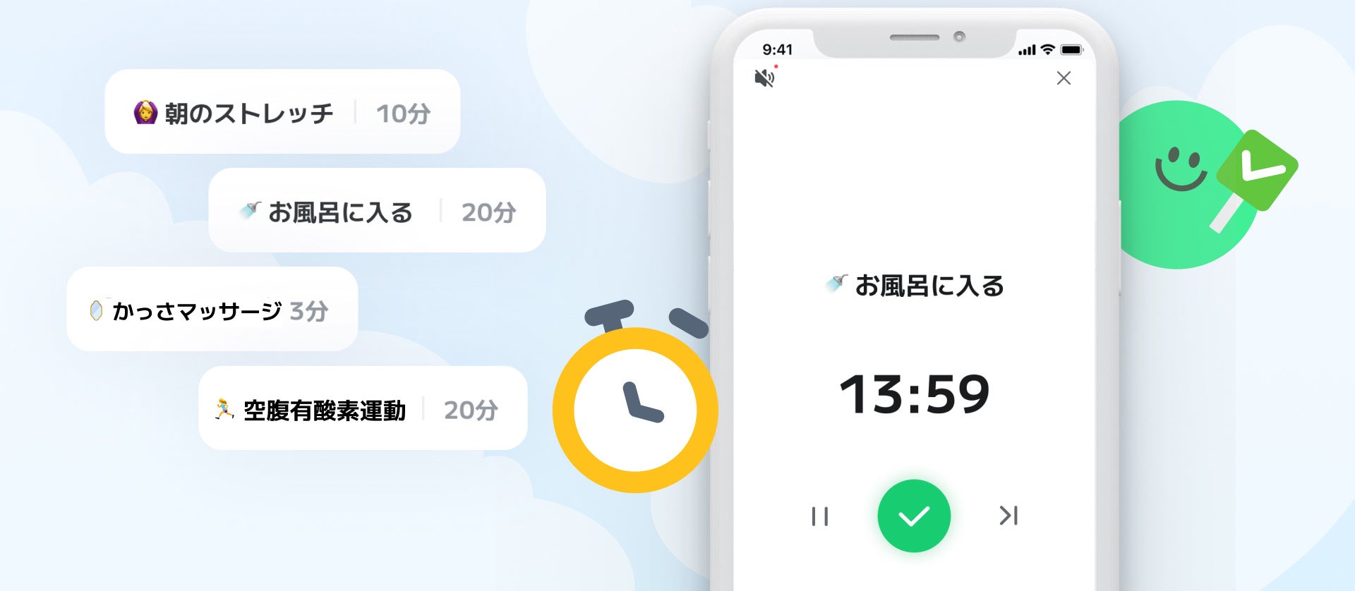 特に、ルーチンタイマー機能が好評です。たとえば「15分間のホームトレーニング」では、「この時間に終わらせる」という集中感が生まれ、それを達成したときの満足感が蓄積されます。目標設定から行動促進までを一貫する設計が、「本当に役立つ習慣アプリ」と好評です。