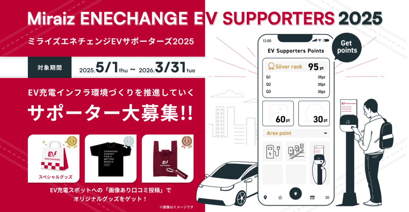 ミライズエネチェンジ株式会社(本社:東京都中央区、代表取締役社長:柘野 善隆、以下「ミライズエネチェンジ」)は、安心して利用できるEV充電インフラ環境づくりの推進を目的とした参加型プログラムを実施してきましたが、この度ミライズエネチェンジとして初めて「ミライズエネチェンジEVサポーターズ」を2025年5月1日より開始することをお知らせいたします。