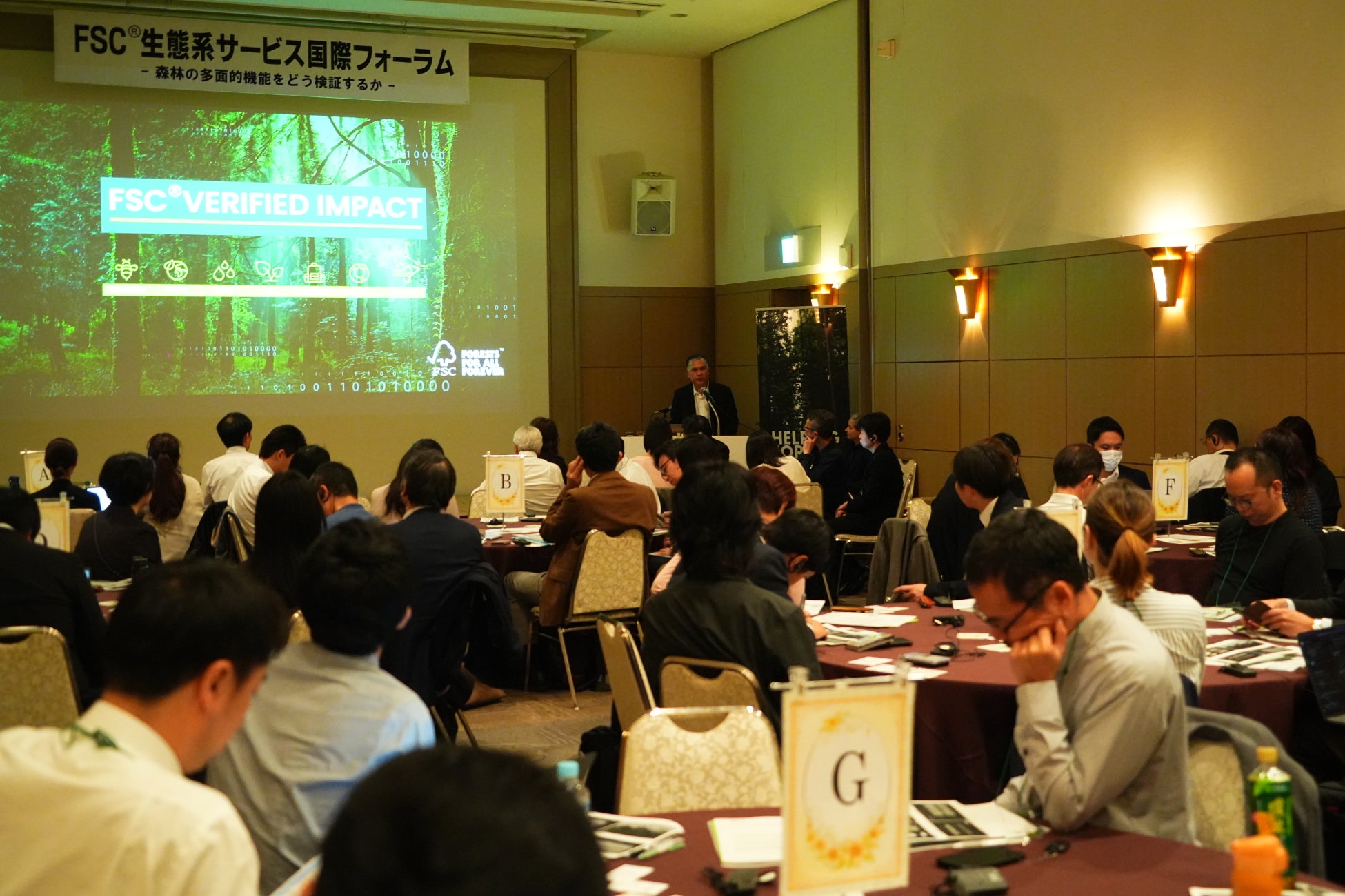 国際的な森林認証制度FSC(Forest Stewardship Council®)の普及啓発を行うFSCジャパン(特定非営利活動法人 日本森林管理協議会、代表:太田猛彦)は、「ネイチャーポジティブ」に向けてTNFDをはじめとした企業への情報開示が求められる中、そのような取り組みを支援するFSCの生態系サービス効果検証ツールを紹介するイベントとして、3月28日(金)に東京にて「FSC生態系サービス国際フォーラム」を開催いたしました。FSC認証に取り組む自治体、林業会社、建設業者、日用品・飲料・食品メーカー、小売企業、省庁、NGOなどの多岐にわたる業界から、92名の方にご参加いただきました。