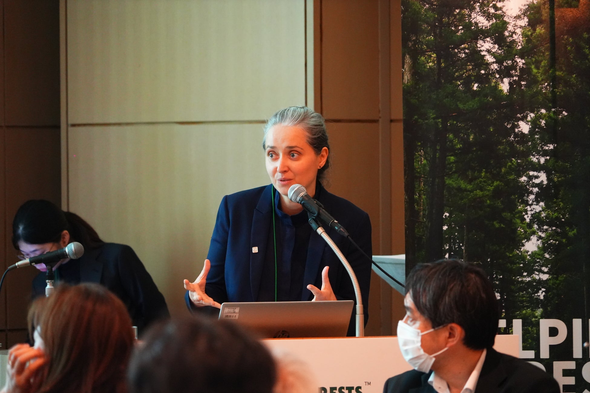 また、来日したFSC国際事務局 アジア太平洋地域気候・生態系サービス主任Rocky Iskandarと気候・生態系サービスプログラムマネージャー Maria Wowroより、グリーンウォッシングのリスクを避けるためには質の高い一次情報が必要であること、FSC認証では森林がもたらす便益を測定・検証するための自主的で追加的な効果検証ツールを用意しており、この効果検証ツールを利用することで、昆明・モントリオール生物 多様性枠組(GBF)の枠組みに沿って報告が可能であり、CSRDやGRI、CDP、TNFDなどの多岐にわたる情報開示の枠組みにも準拠していることをご紹介いたしました。Rocky IskandarとMaria Wowroのプレゼンテーションについては、以下の開催報告より動画とプレゼン資料を覧いただけます。