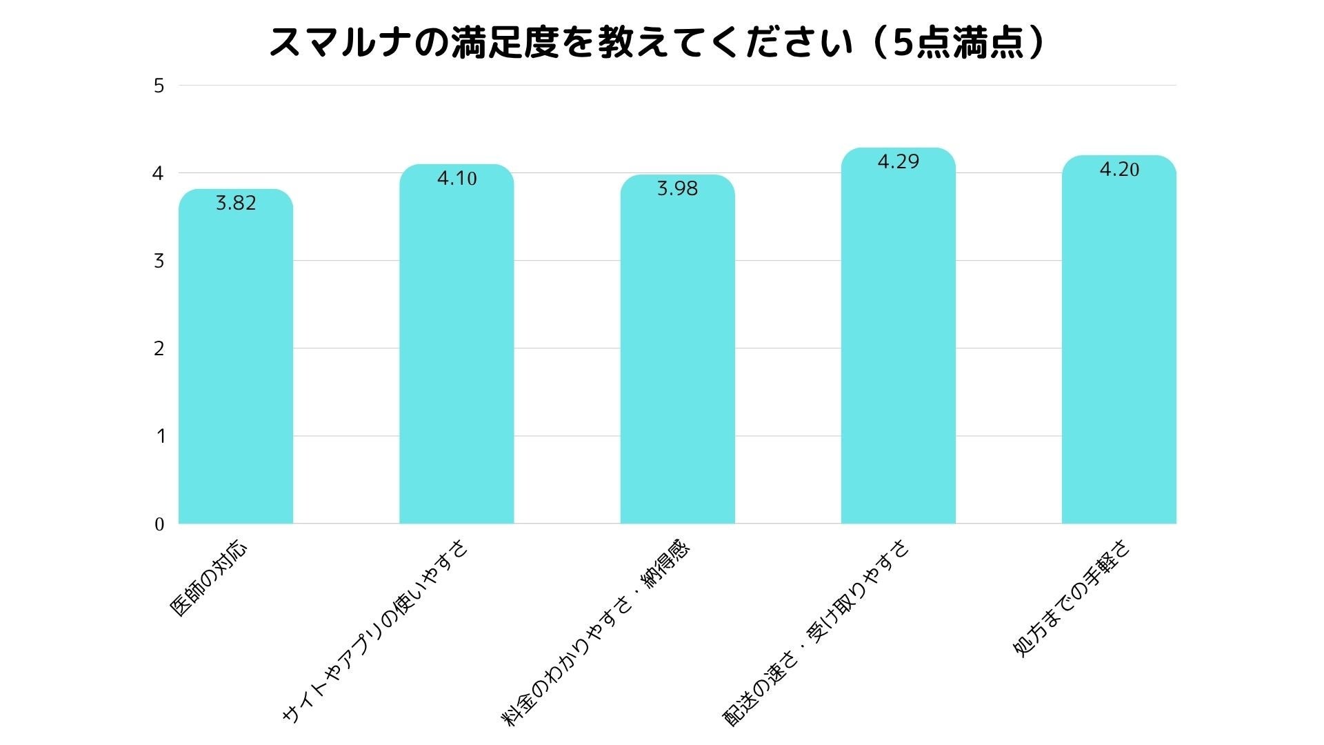 スマルナのサービス満足度を5段階で調査|配送と処方の手軽さに高評価
